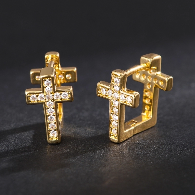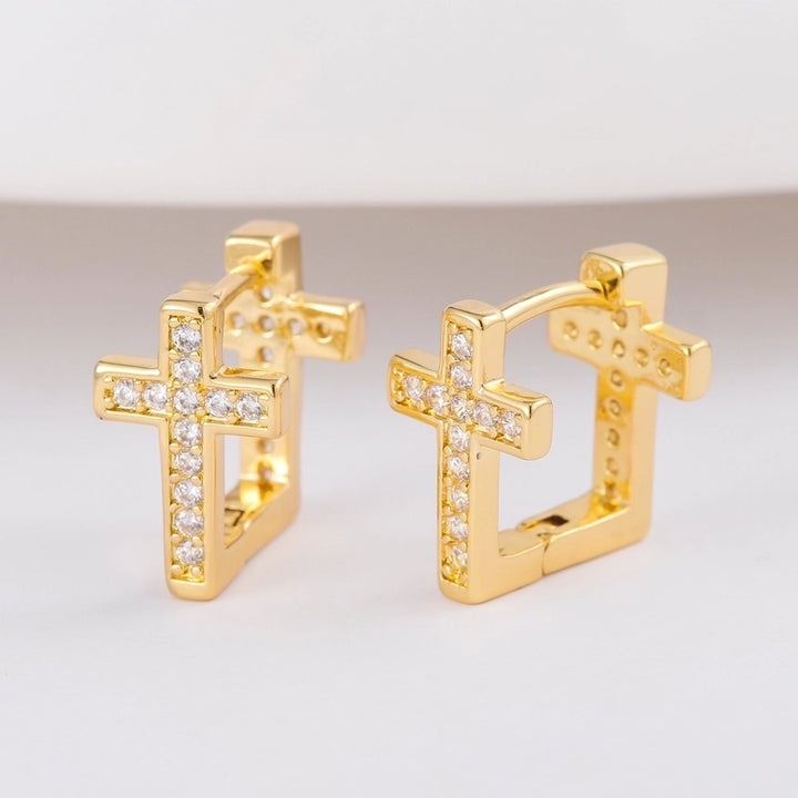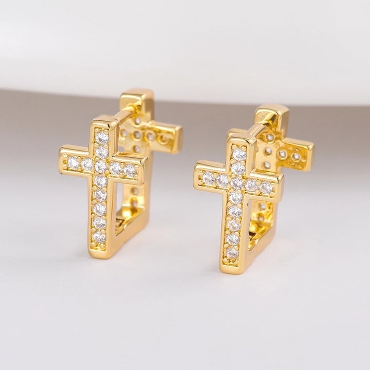 1 Pair Fashion Exquisite Copper Plating 18K Gold Inlaid Square Crystal Zircon U-Shaped Cross Ear Clip