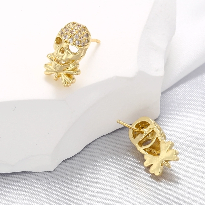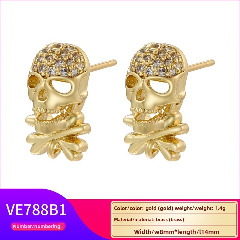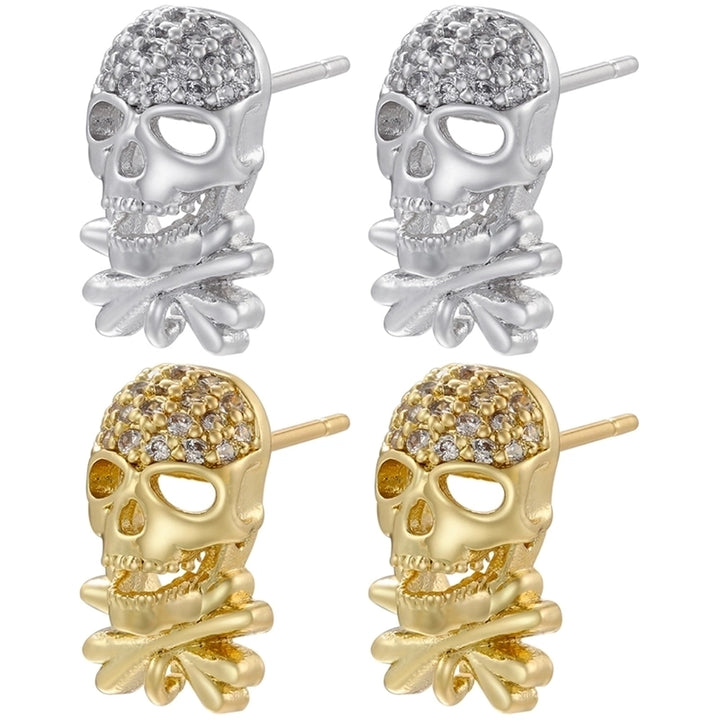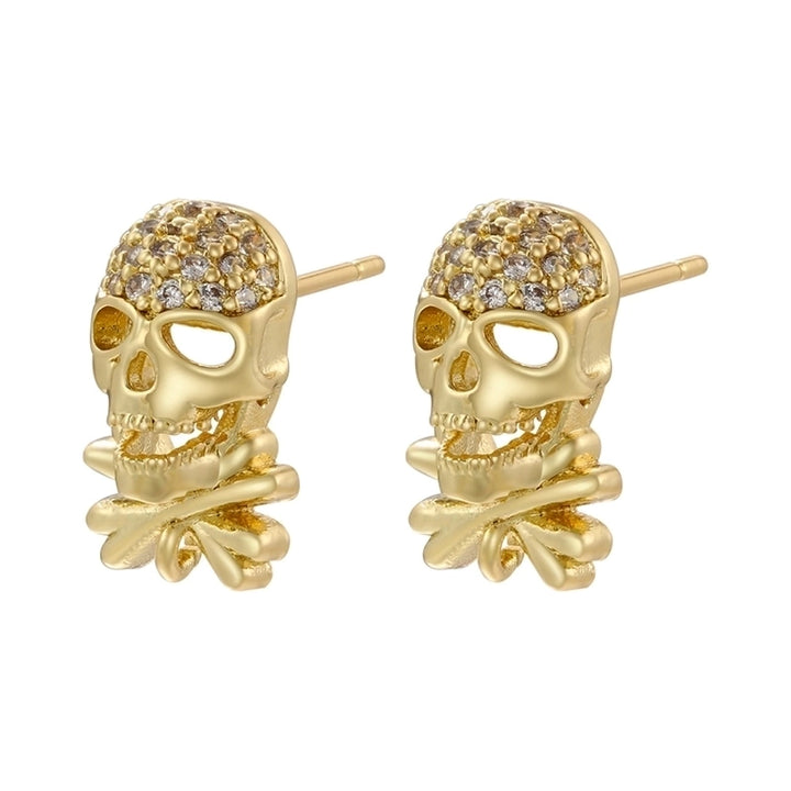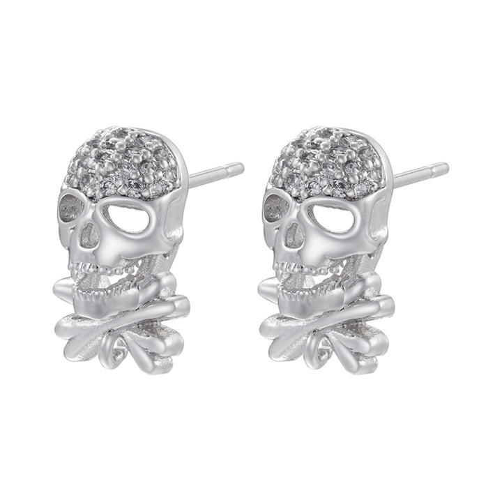 1 Pair Halloween Punk Skull Plating Hollow Out Inlay Copper Zircon Ear Studs