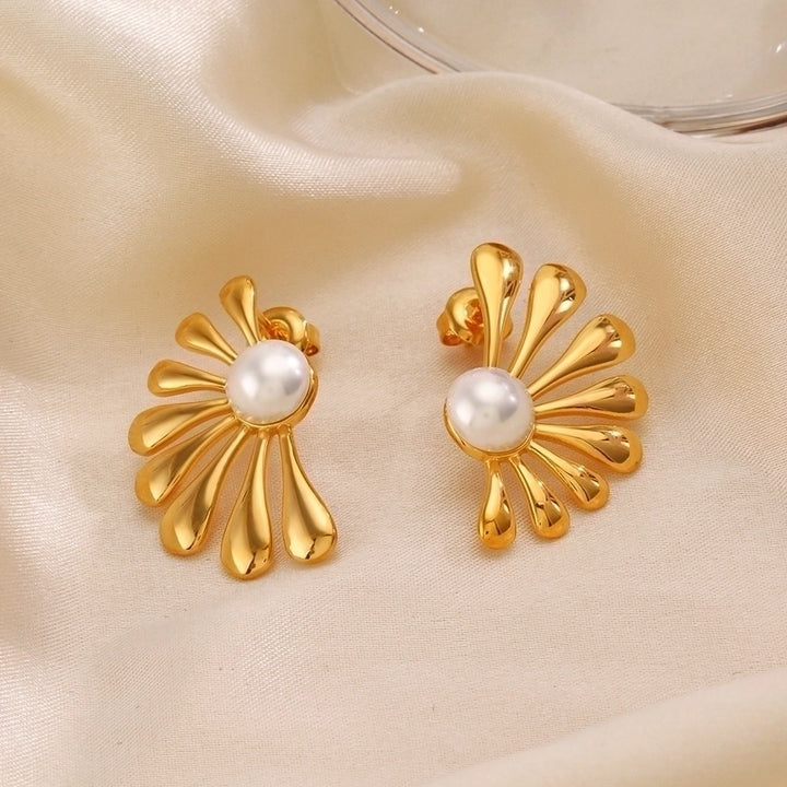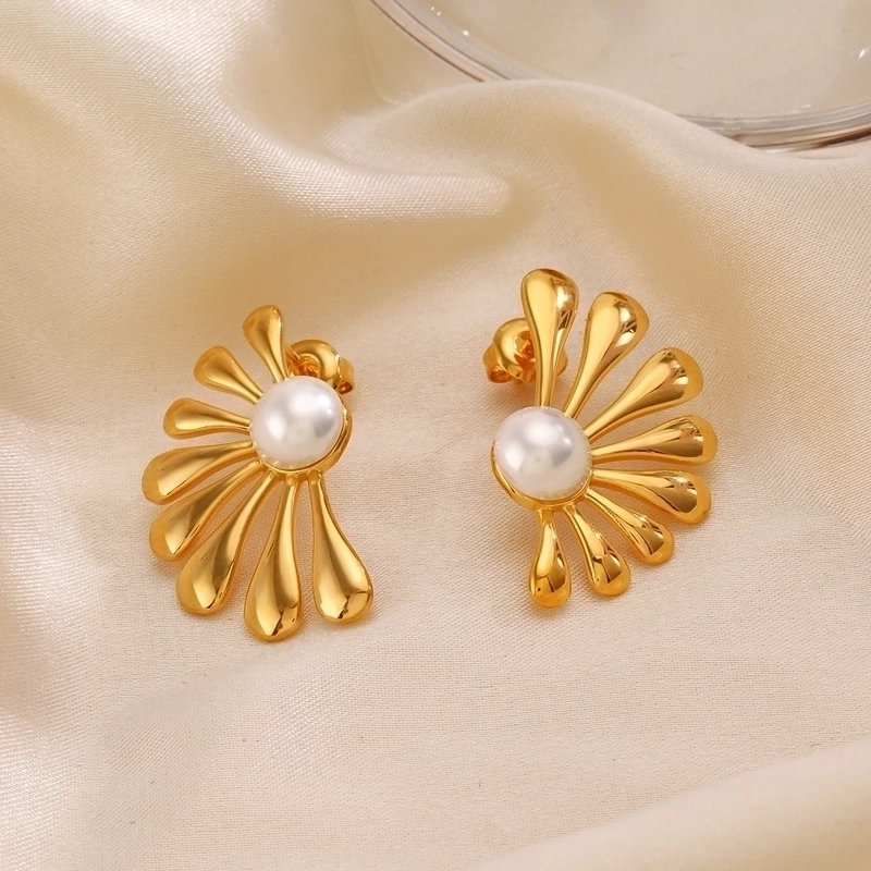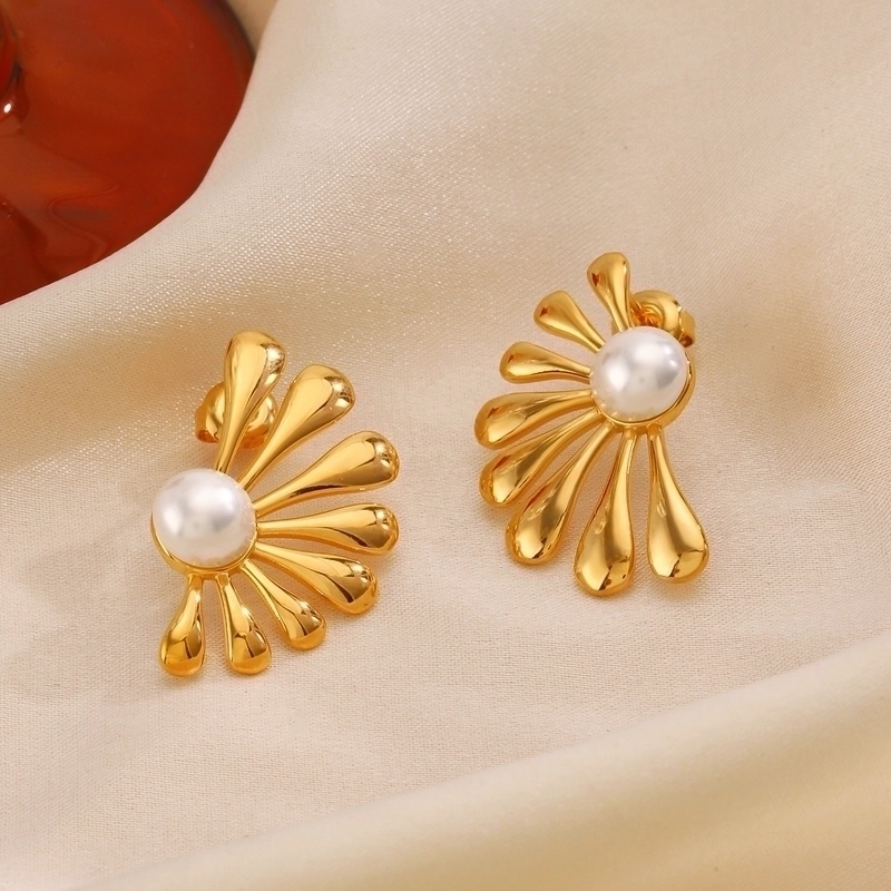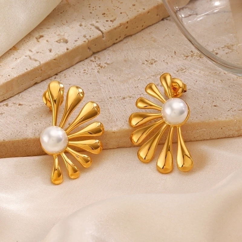 1 Pair Ig Style Flower Asymmetrical Inlay 304 Stainless Steel Artificial Pearls 18K Gold Plated Ear Studs