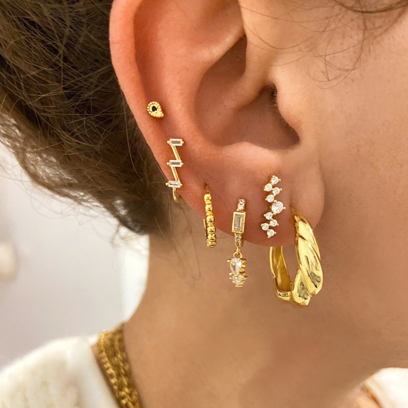 1 Pair Ins Style Water Droplets Copper Inlay Zircon Earrings