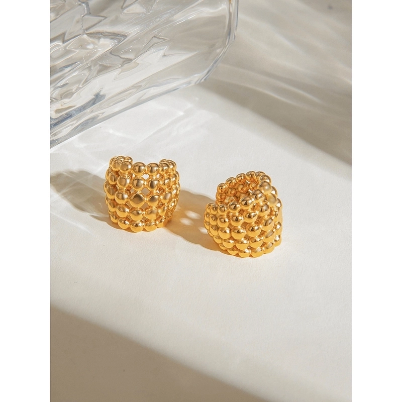 1 Pair Minimalist Classic Style Honeycomb Plating 304 Stainless Steel 18K Gold Plated Ear Cuffs