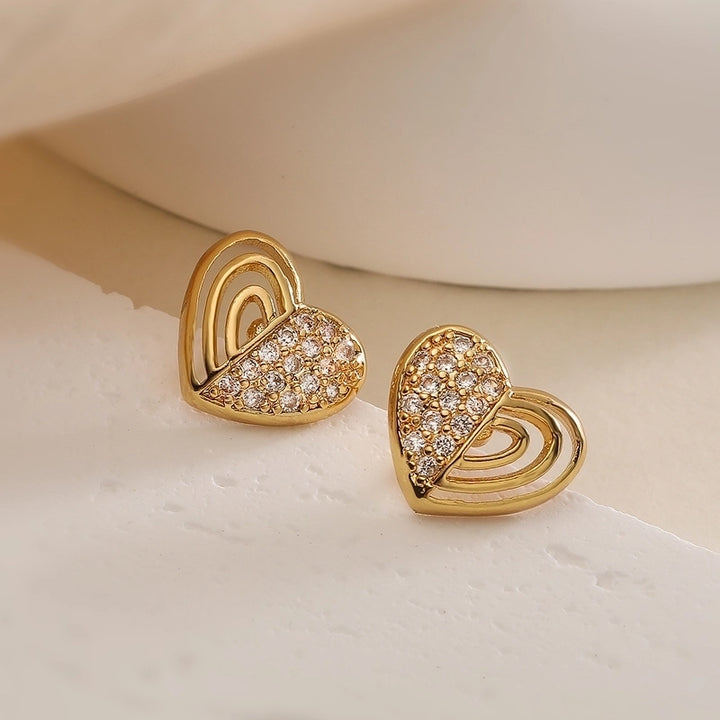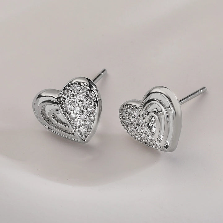 1 Pair Minimalist Commute Heart Shape Plating Inlay Copper Zircon Ear Studs