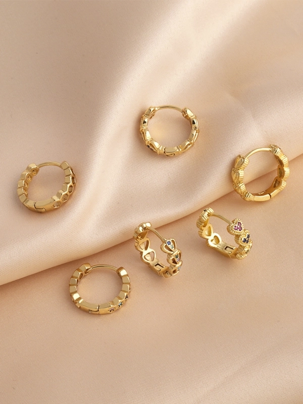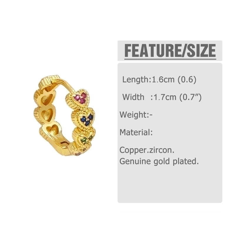 1 Pair Minimalist Heart Shape Inlay Copper Zircon 18K Gold Plated Hoop Earrings