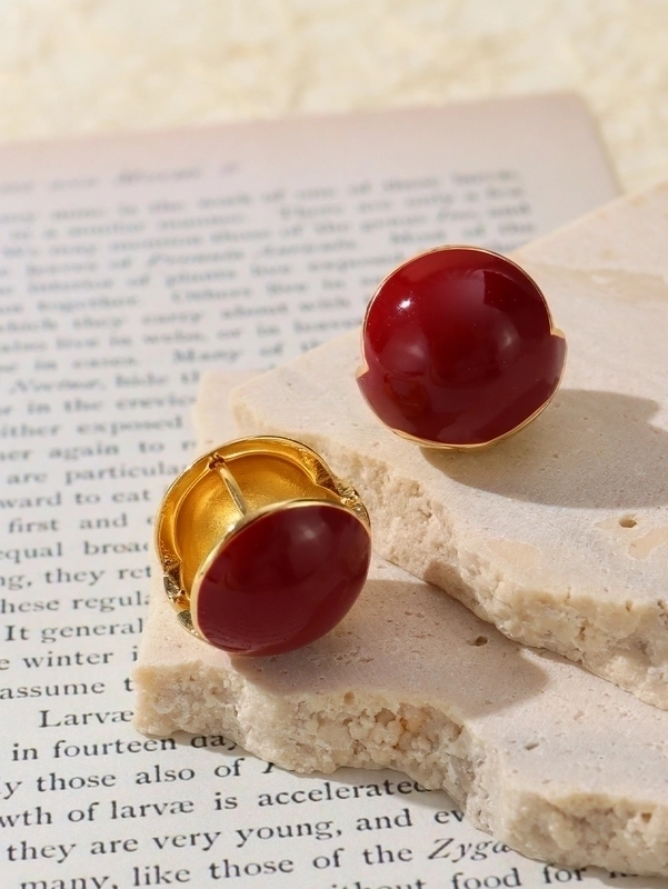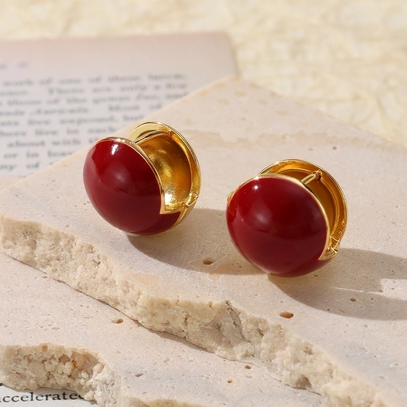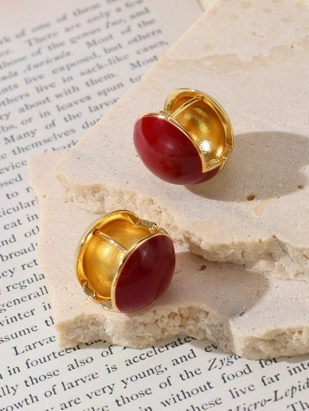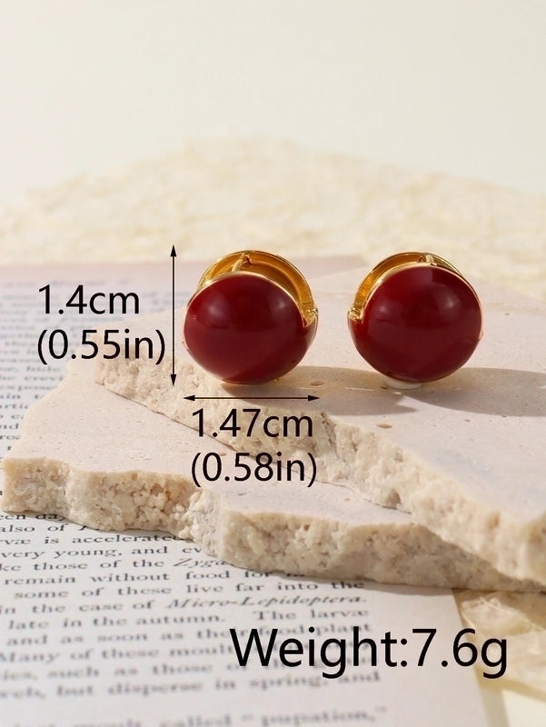 1 Pair Minimalist Round Enamel Plating Brass 18K Gold Plated Earrings