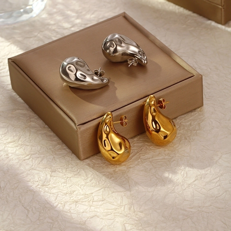 1 Pair Minimalist Shiny Water Droplets Polishing Pleated 316L Stainless Steel 18K Gold Plated Ear Studs