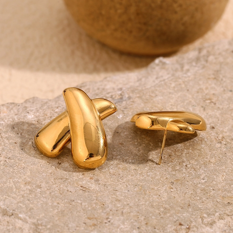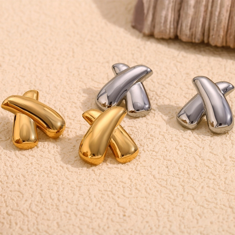 1 Pair Minimalist X-Shaped Solid Color Plating 304 Stainless Steel 18K Gold Plated Ear Studs
