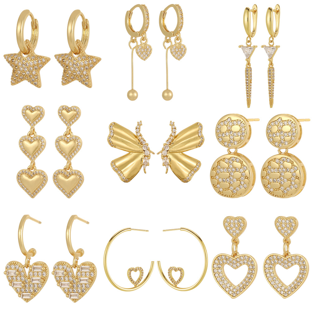 1 Pair Modern Style Classic Style Star Heart Shape Plating Inlay Copper Zircon Drop Earrings