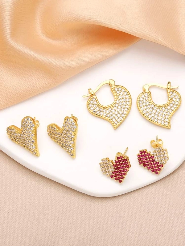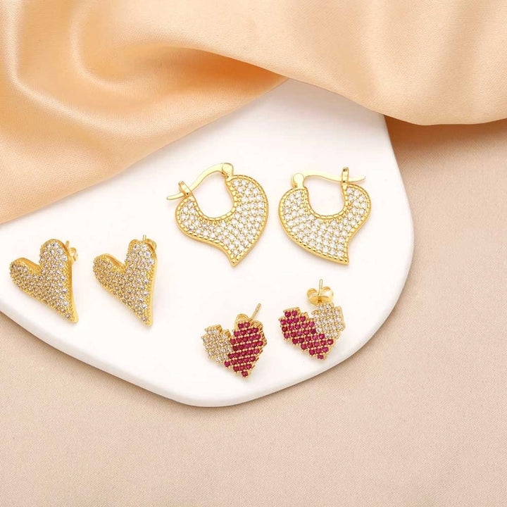 1 Pair Modern Style Minimalist Heart Shape Inlay Copper Zircon 18K Gold Plated Earrings Ear Studs
