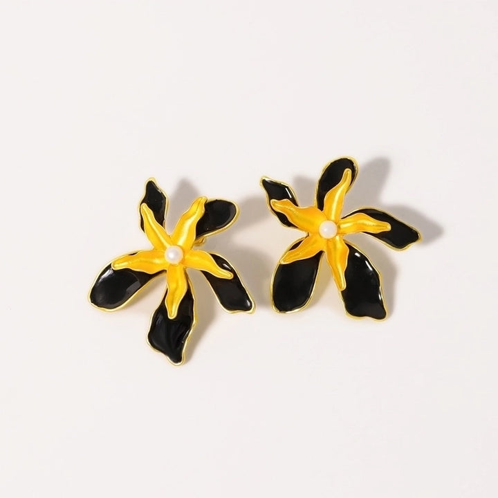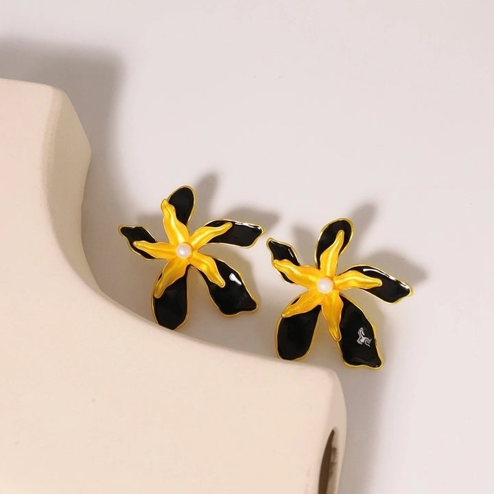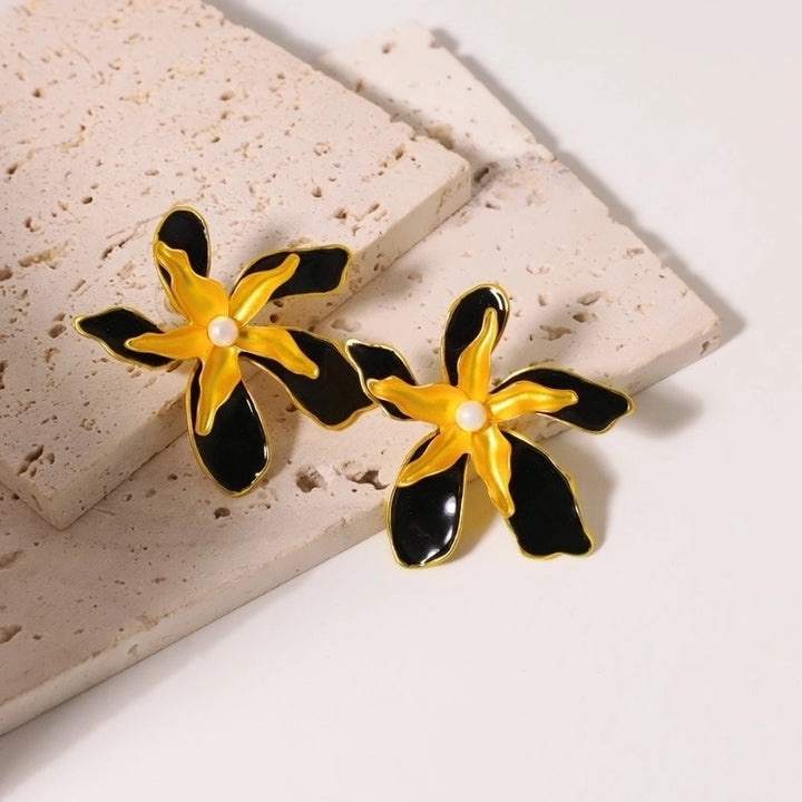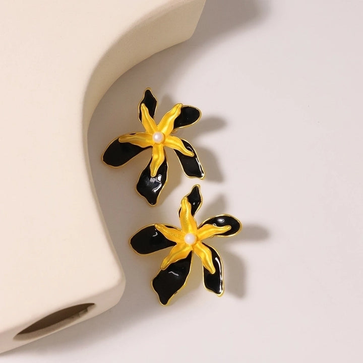 1 Pair Original Design Flower Plating Freshwater Pearl 18K Gold Plated Ear Studs