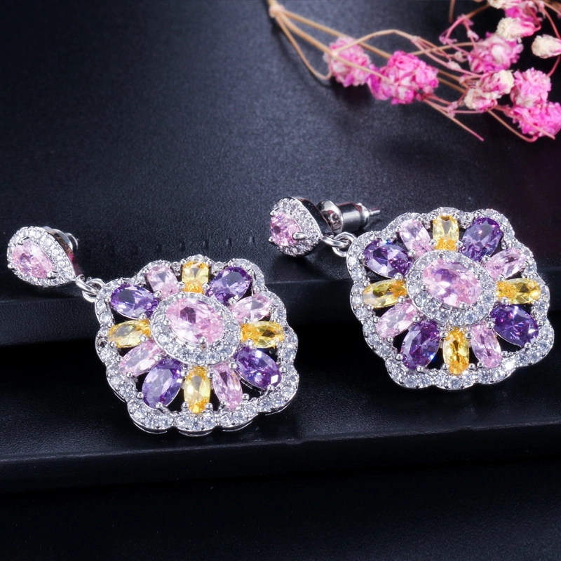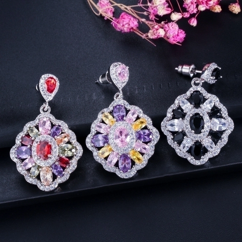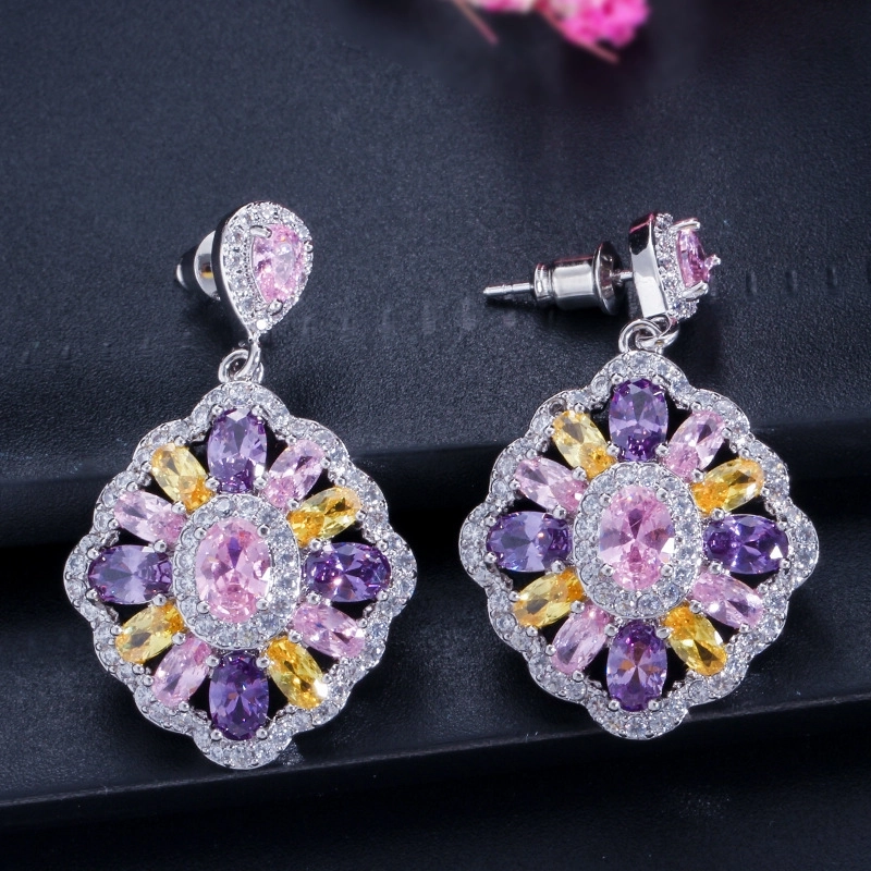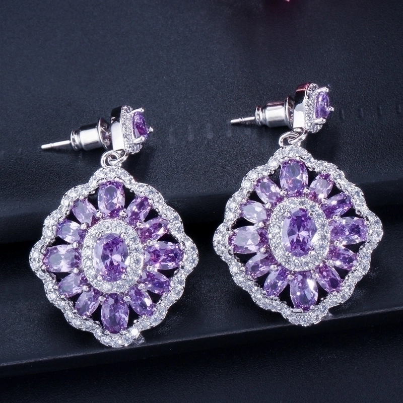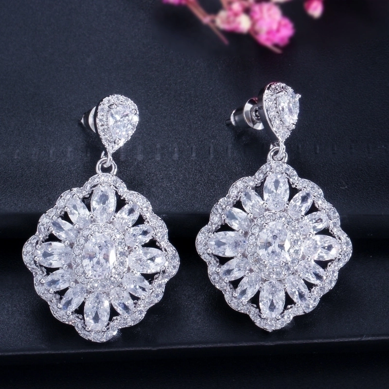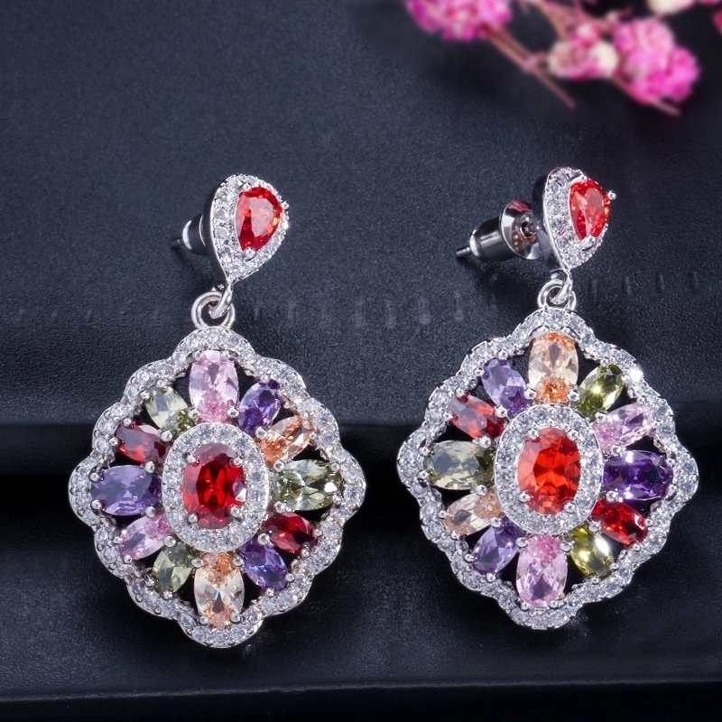 1 Pair Romantic Commute Rhombus Plating Inlay Copper Zircon Rhodium Plated Silver Plated Drop Earrings