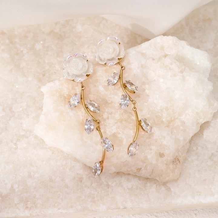 1 Pair Sweet Flower Inlay 304 Stainless Steel Zircon Ear Studs