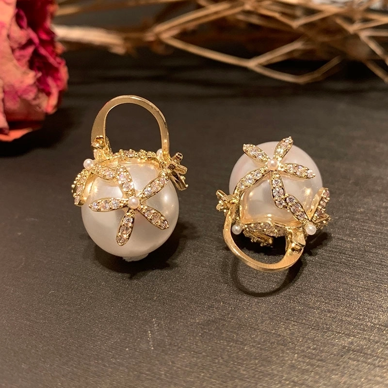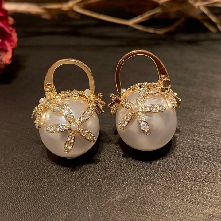 1 Pair Sweet Shiny Flower Plating Inlay Brass Pearl Zircon K Gold Plated Earrings