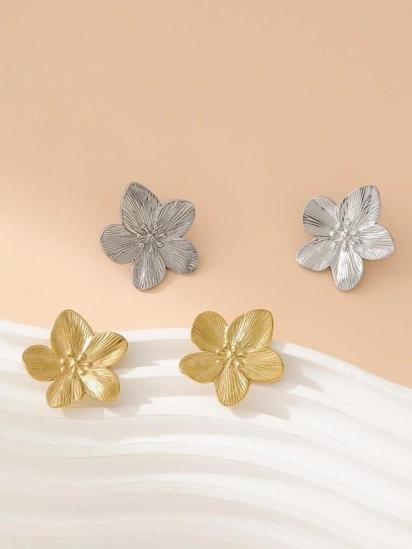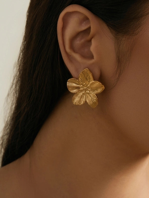 1 Pair Vintage Style Lady Artistic Flower 304 Stainless Steel 18K Gold Plated Ear Studs