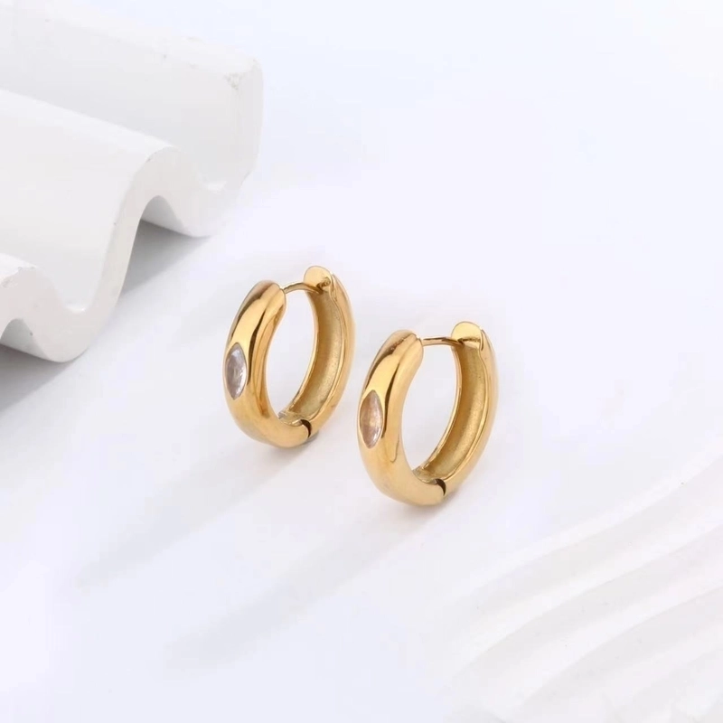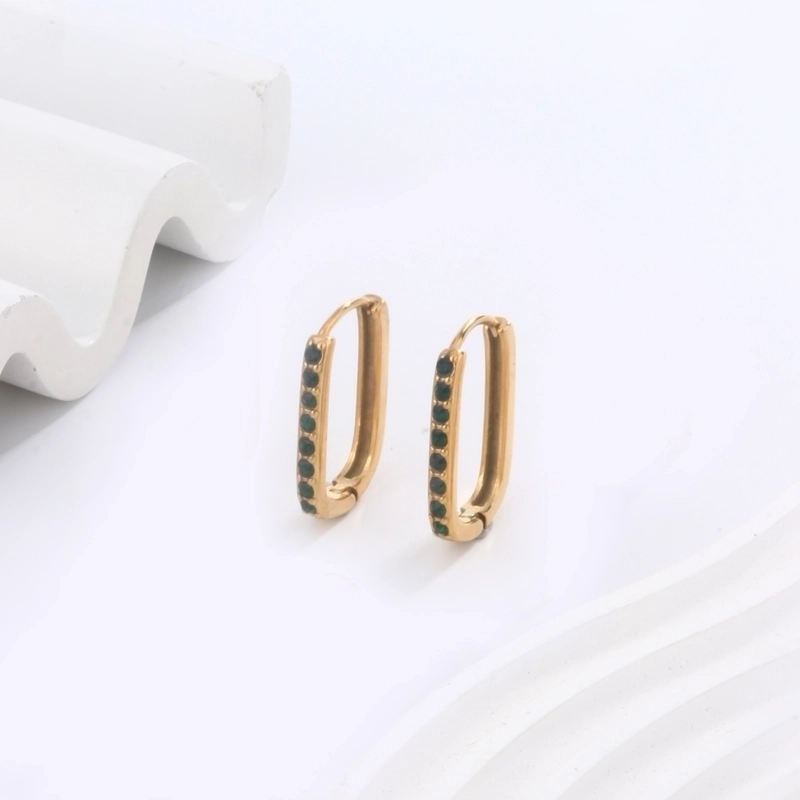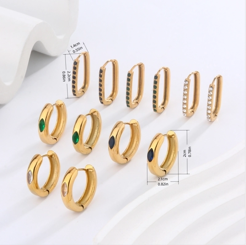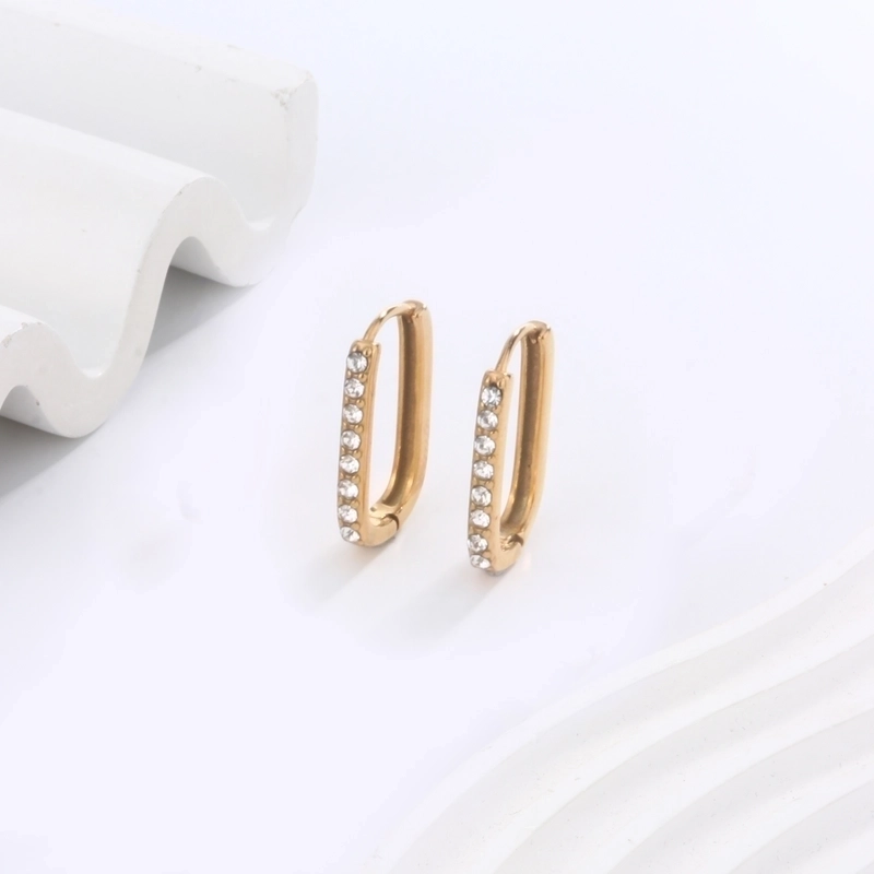 1 Pair Vintage Style Minimalist Geometric Inlay 304 Stainless Steel Zircon 18K Gold Plated Earrings