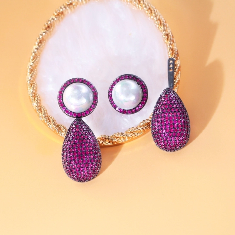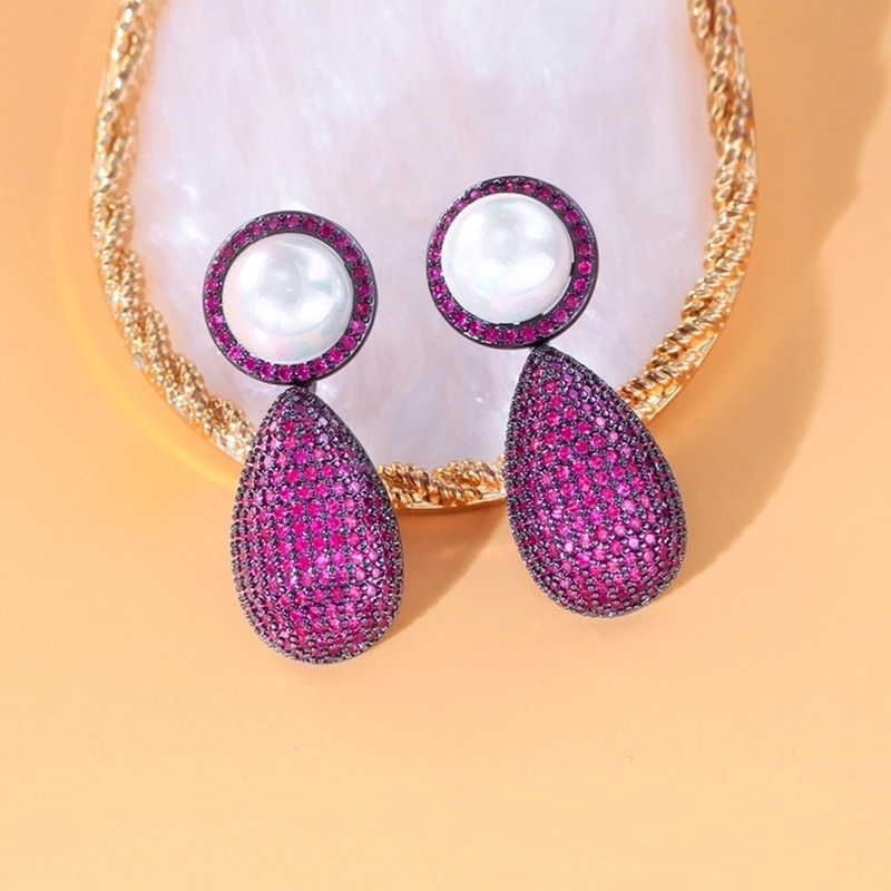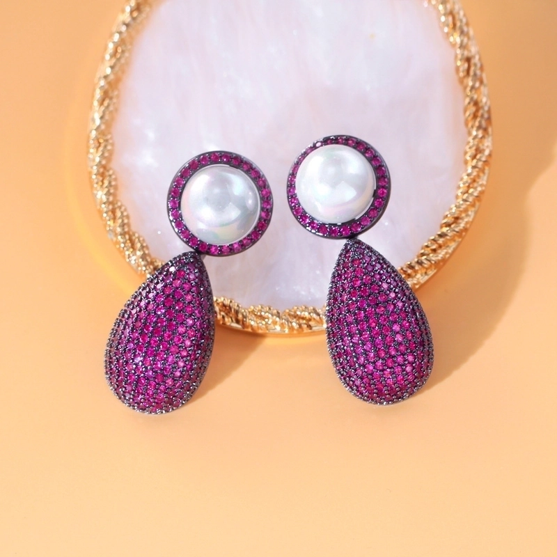 1 Pair Vintage Style Vacation Round Water Droplets Inlay Copper Pearl Zircon Drop Earrings