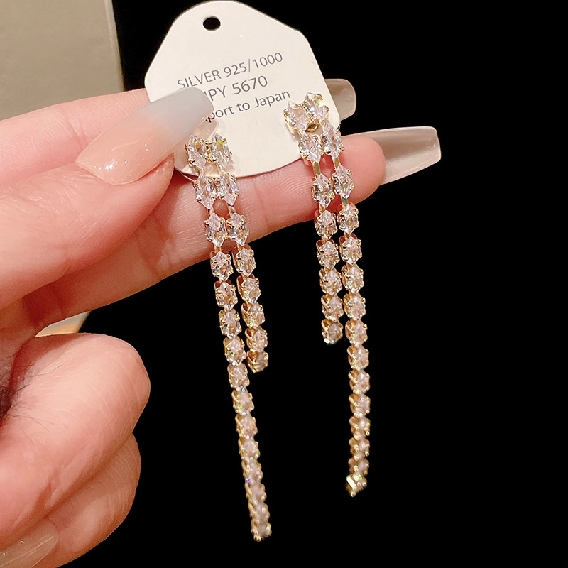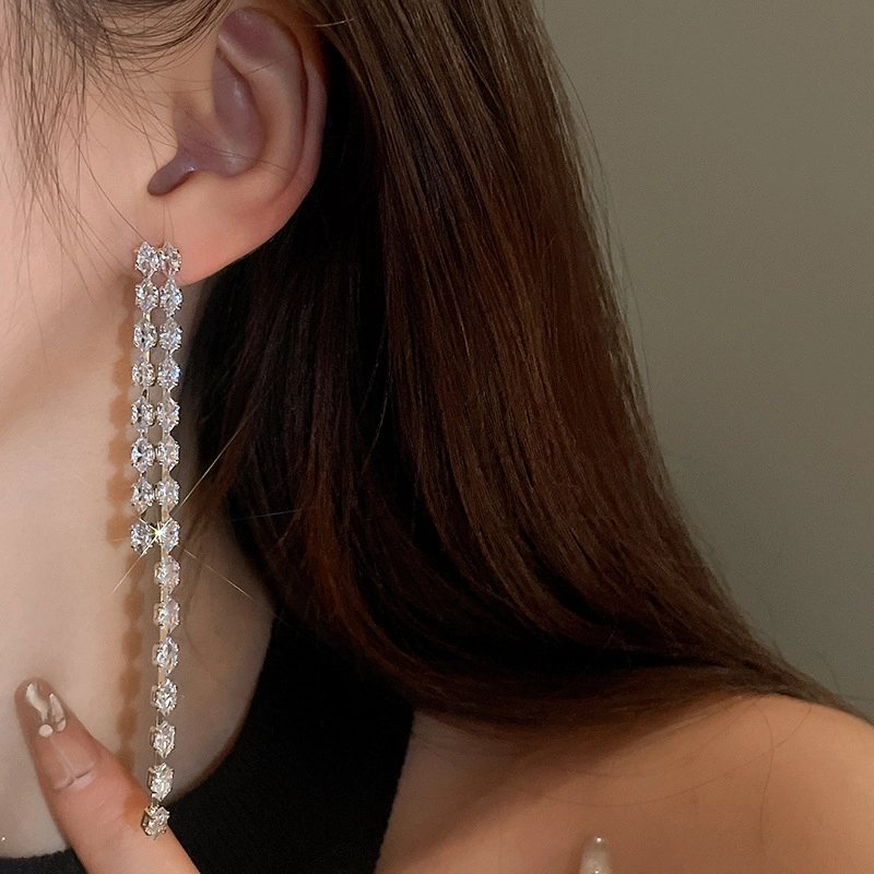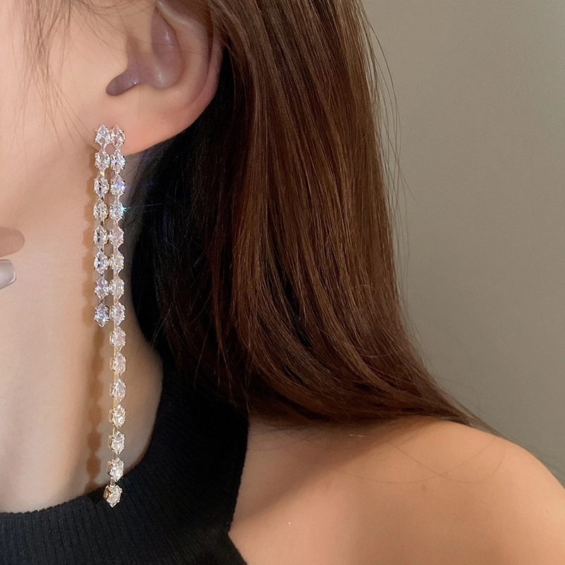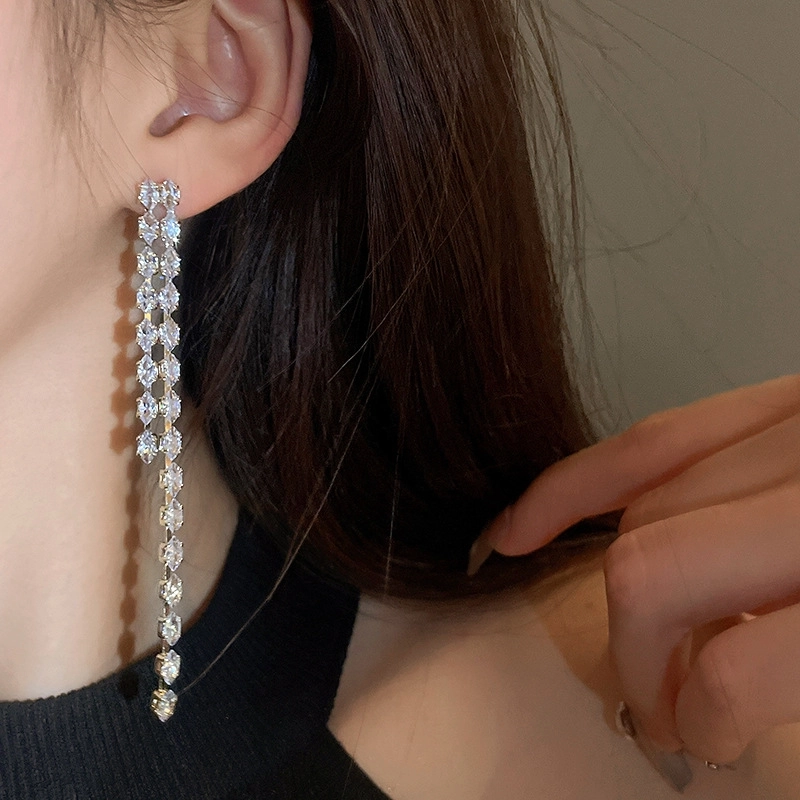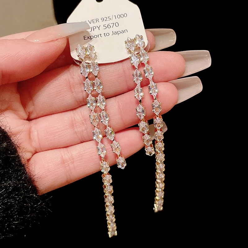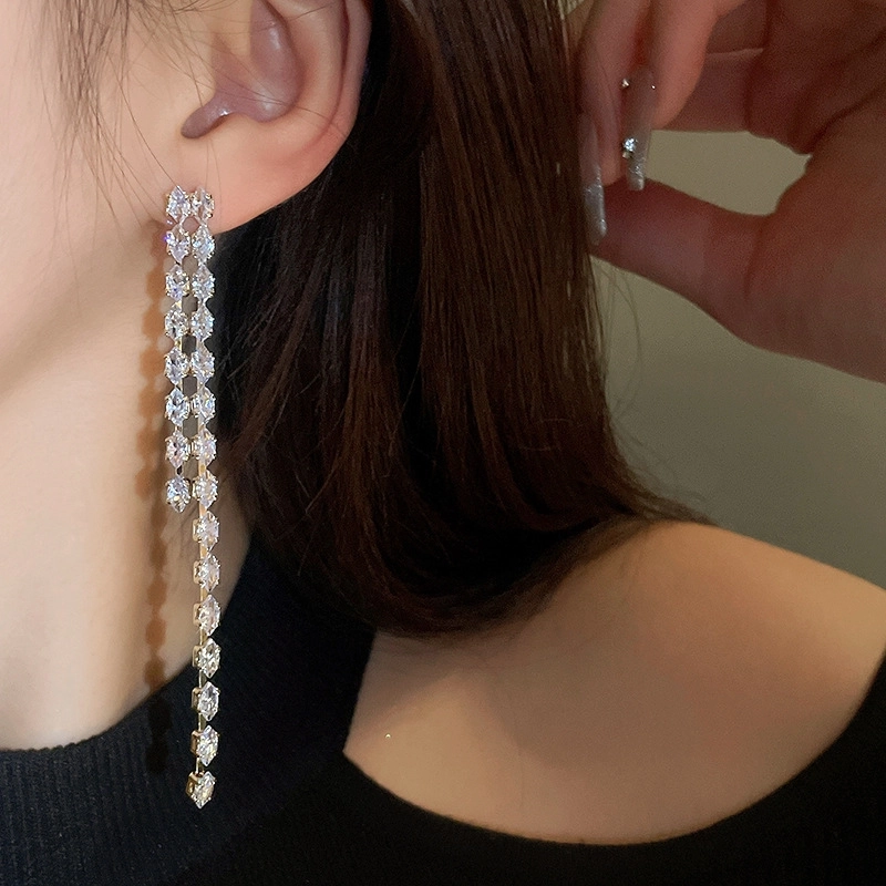 1 Pair Vintage Style Water Droplets Tassel Plating Copper Zircon Drop Earrings