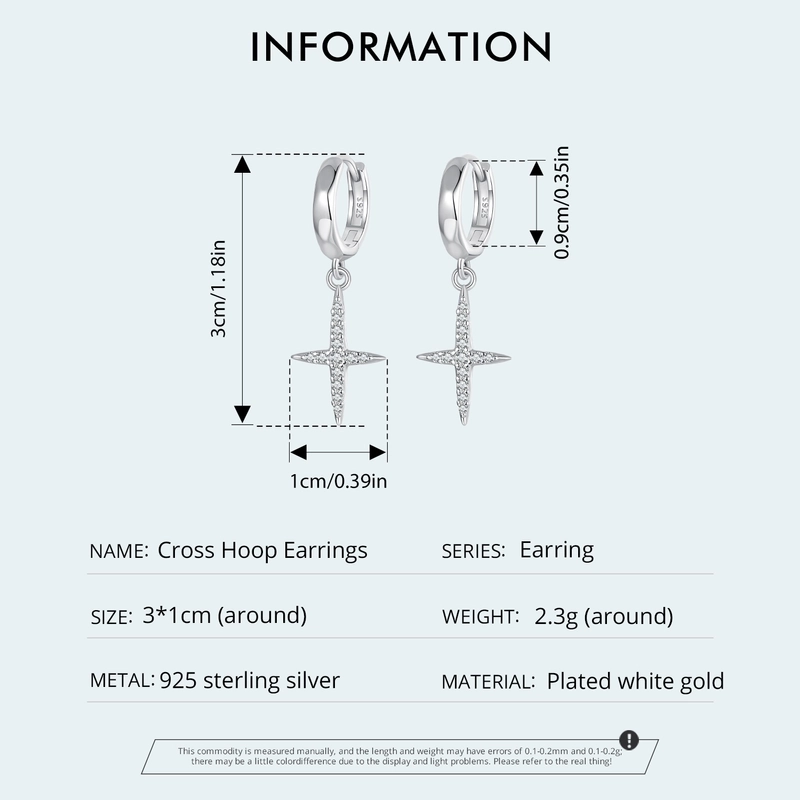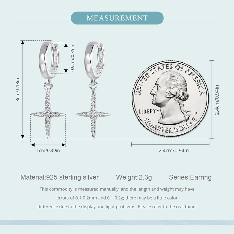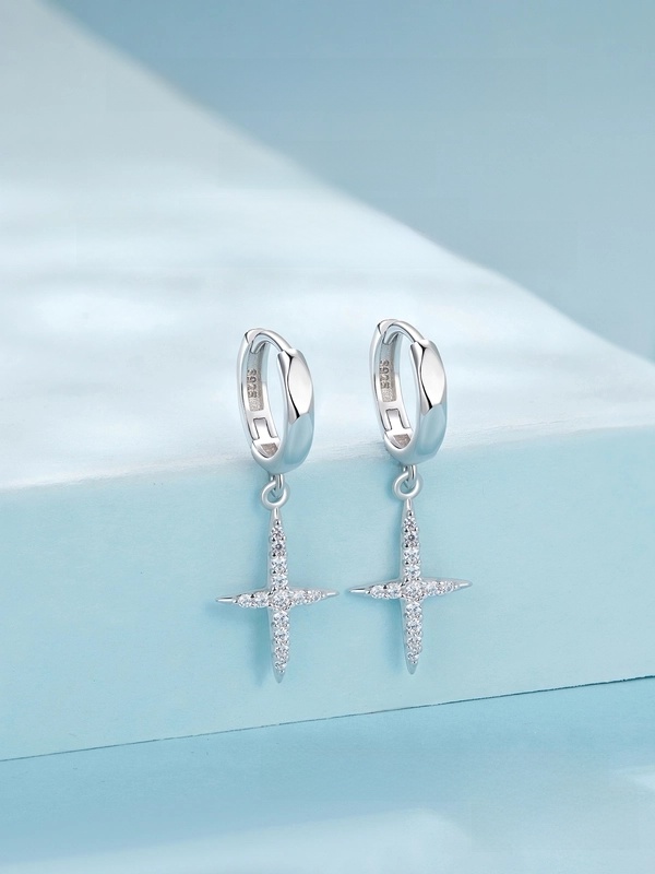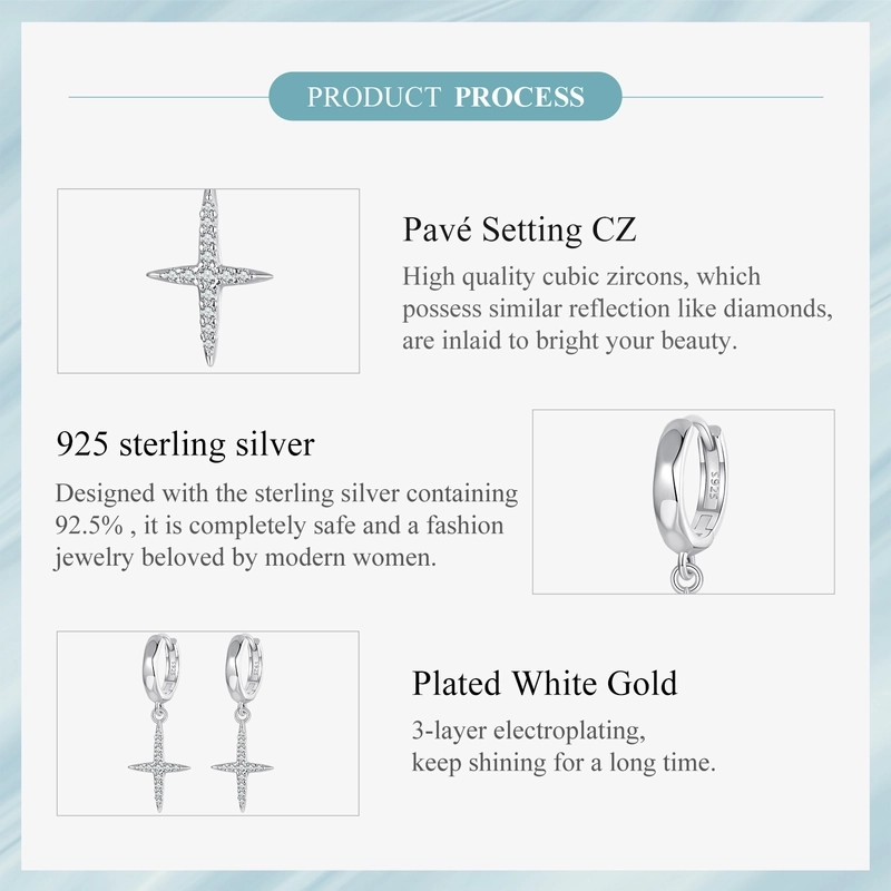 1 Pair White Gold Plated 925 Sterling Silver Zircon Star Drop Earrings