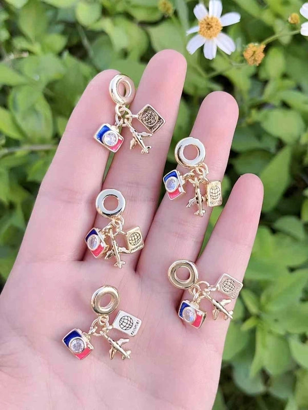 1 Pc/Package Copper Zircon 18K Gold Plated Camera Airplane Jewelry Accessories