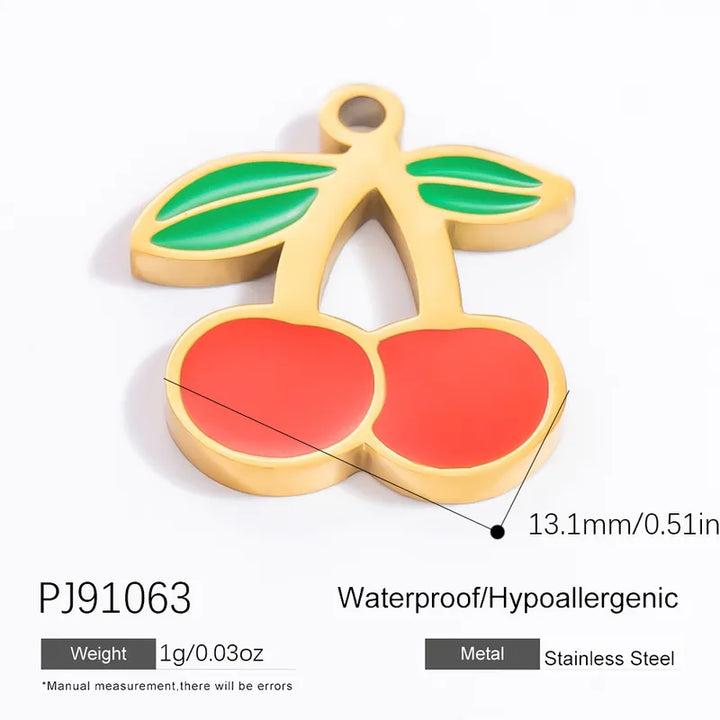 1 Piece 13.62*24.65Mm 304 Stainless Steel Resin Cherry Fruit Polished Pendant Jewelry Accessories