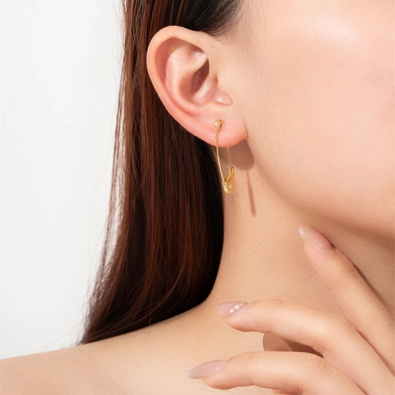1 Piece 18K Gold Plated 925 Sterling Silver Zircon Paper Clip Earrings