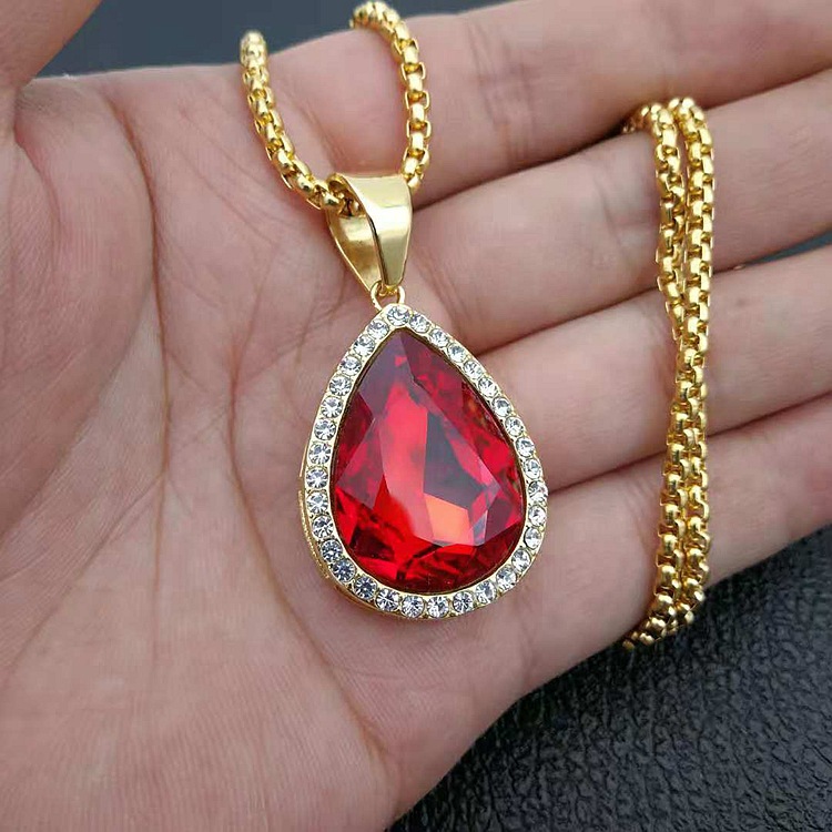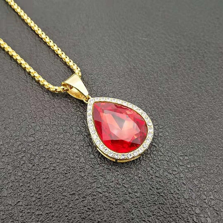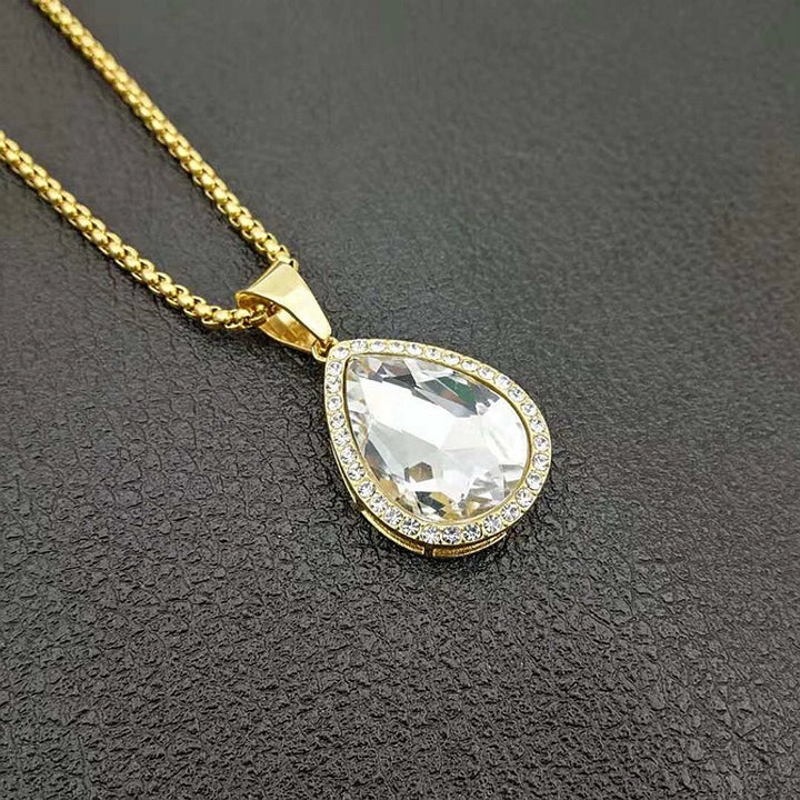 1 Piece 24*45Mm Titanium Steel Glass Zircon Water Droplets Pendant
