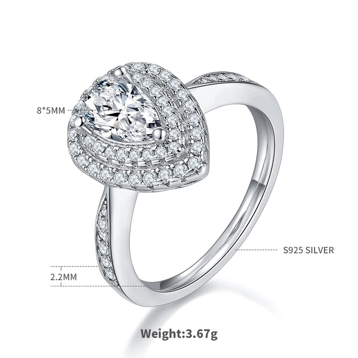 1 Piece 925 Sterling Silver Rhodium Plated Pear-Cut Vvs1-Vvs2 Lab-Grown Diamond Ngic Long-Lasting Plated