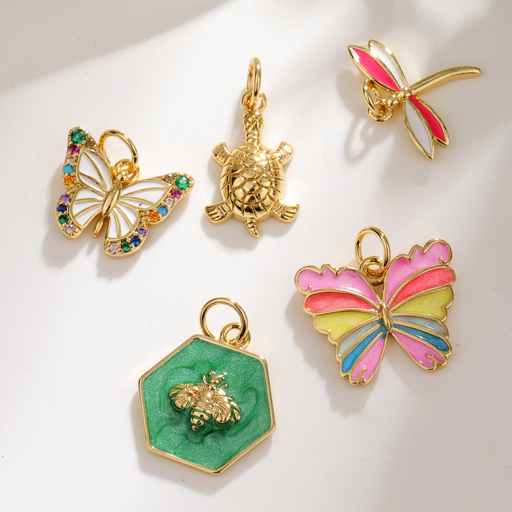 1 Piece Cute Tortoise Dragonfly Butterfly Copper Enamel Plating Jewelry Accessories