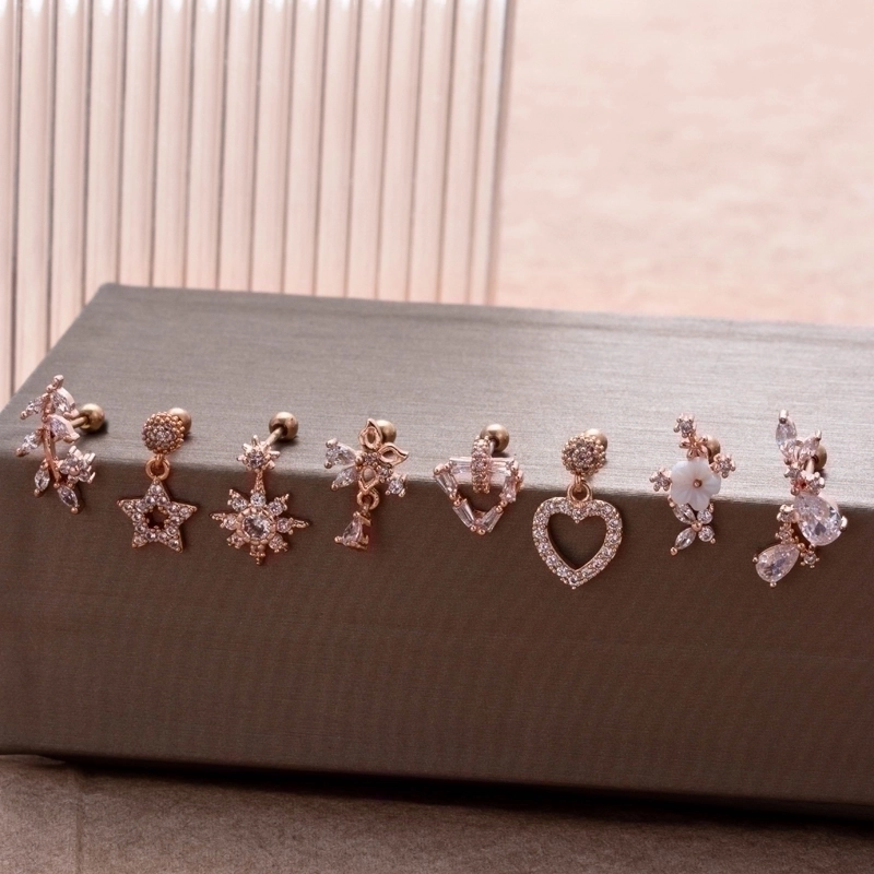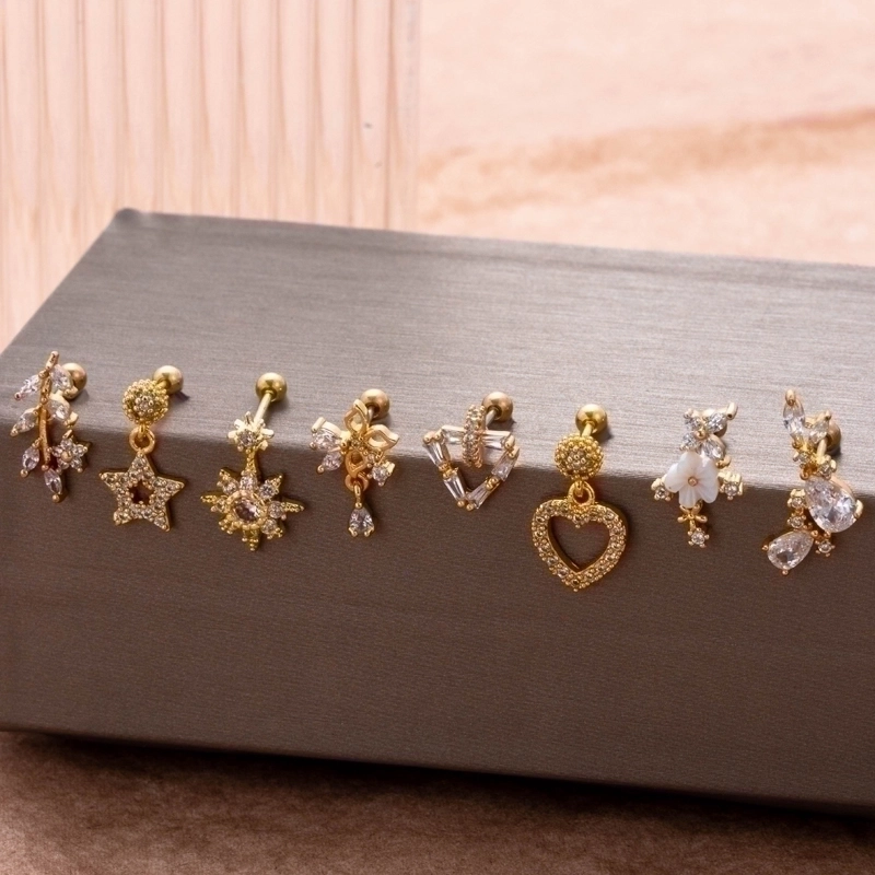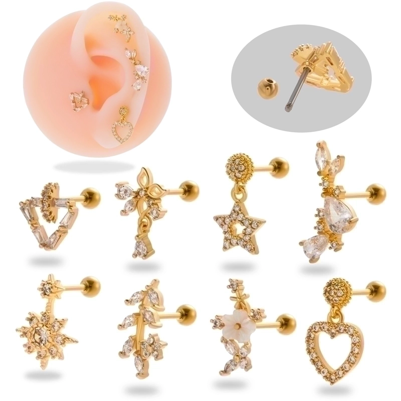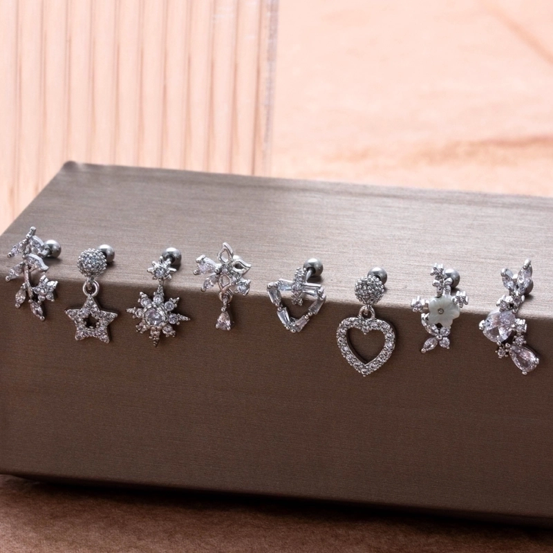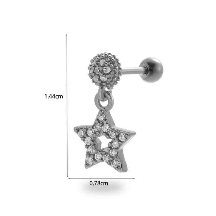 1 Piece Ear Cartilage Rings & Studs Minimalist Classic Style Pentagram Heart Shape Flower 316L Stainless Steel Copper Plating Inlay Zircon