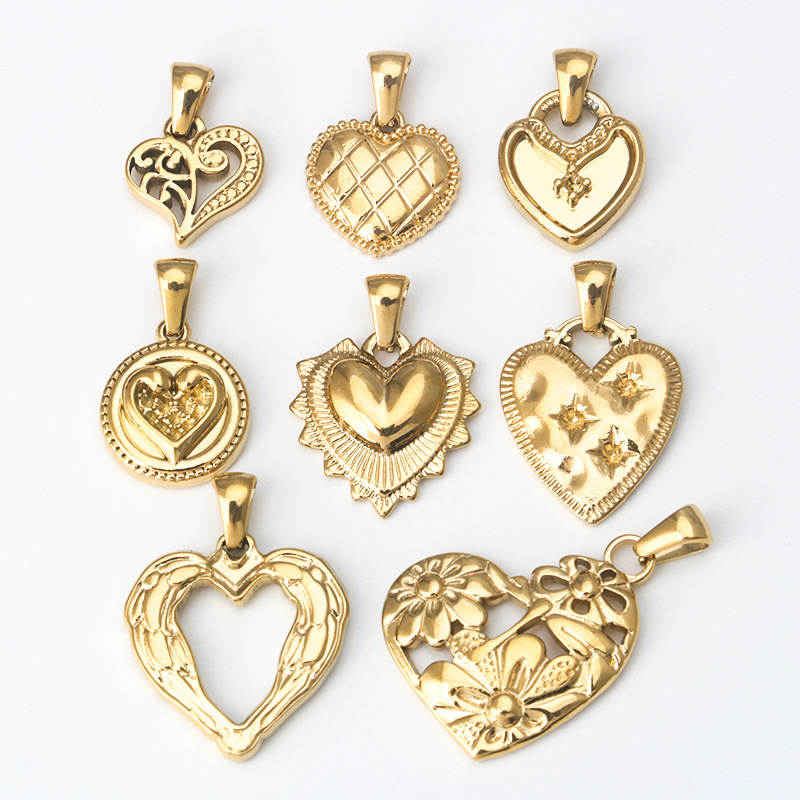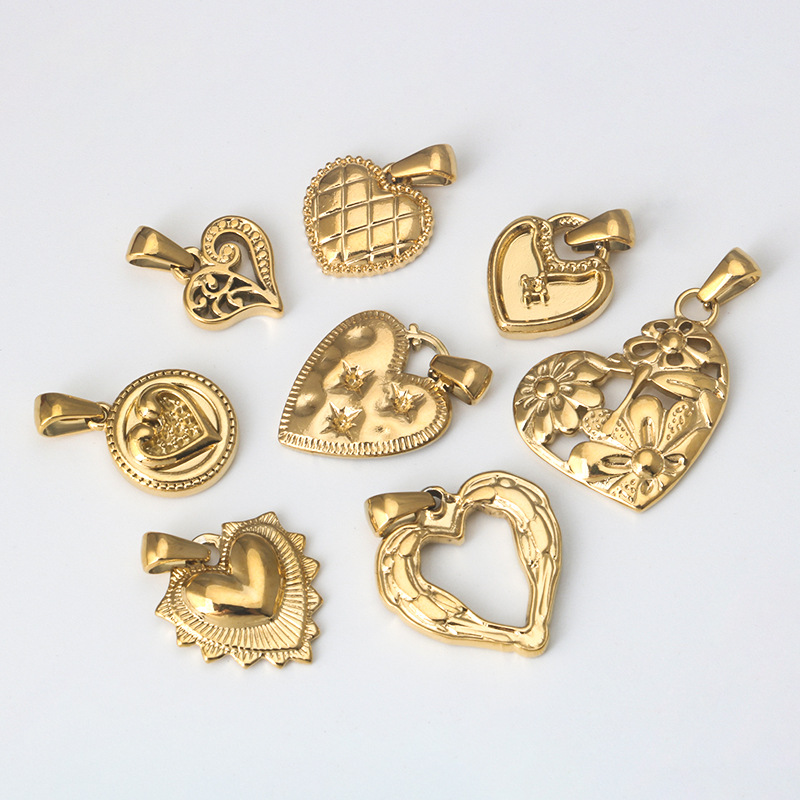 1 Piece Titanium Steel Heart Shape Flower Pendant