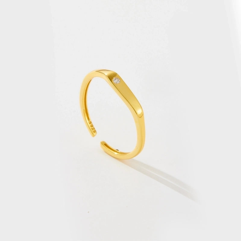 18K Gold Plated White Gold Plated 925 Sterling Silver Zircon Geometric Open Rings