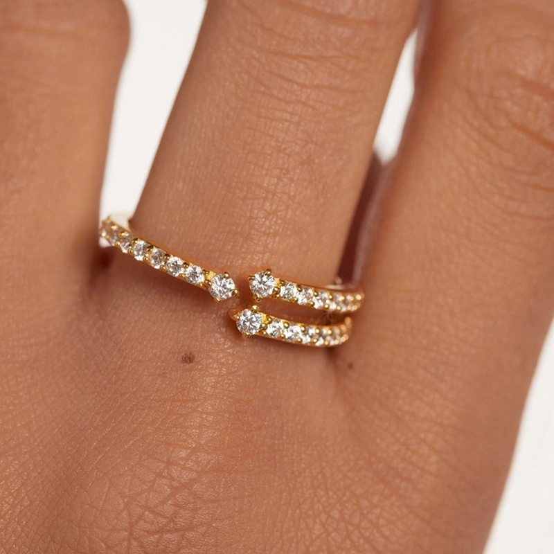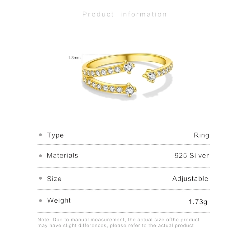 18K Gold Plated White Gold Plated 925 Sterling Silver Zircon Irregular Open Rings