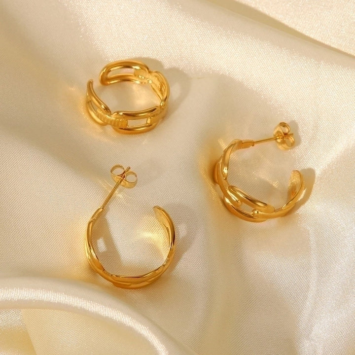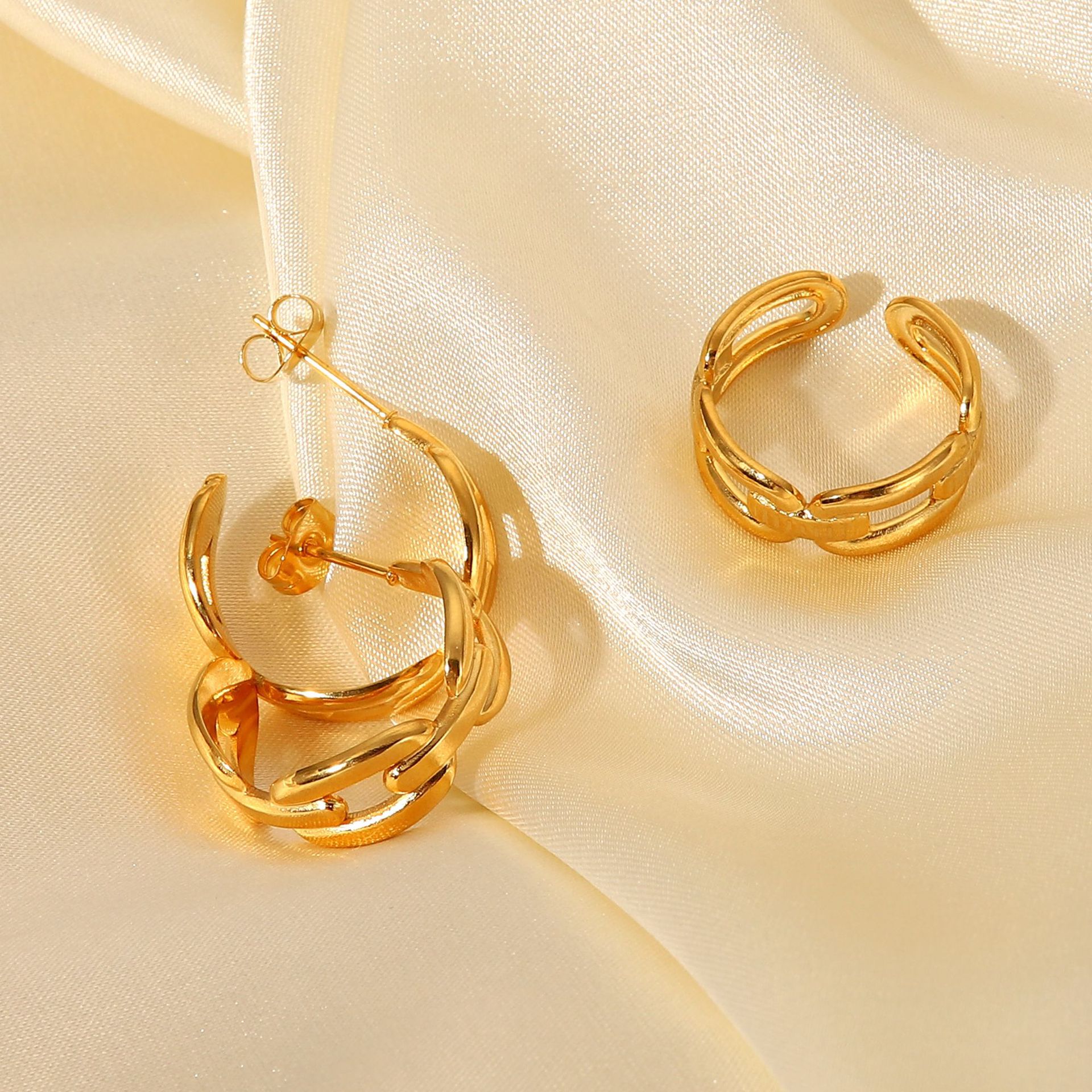 18K Gold Stainless Steel Coffee Bean Buckle Chain C-Type Earrings Open Ring