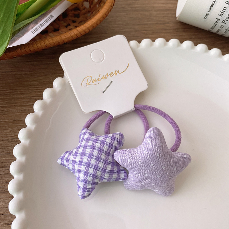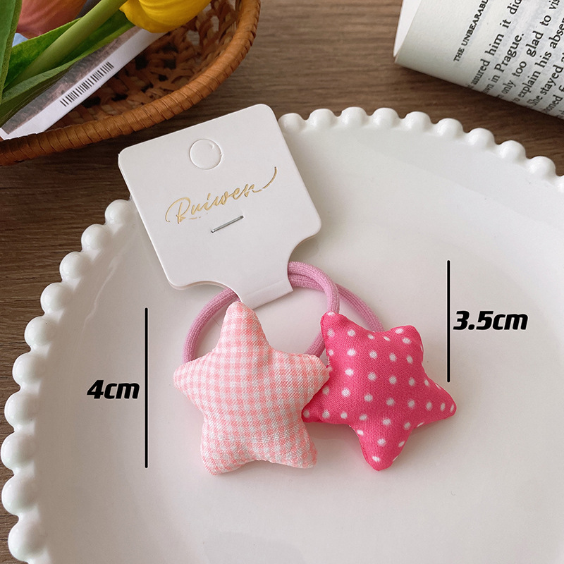 2 Korean Style Sweet Fabric Cotton Filled Colorful Five-Pointed Star Plaid Polka Dot Hair Ring Children Girl Hair Accessory For Ponytail