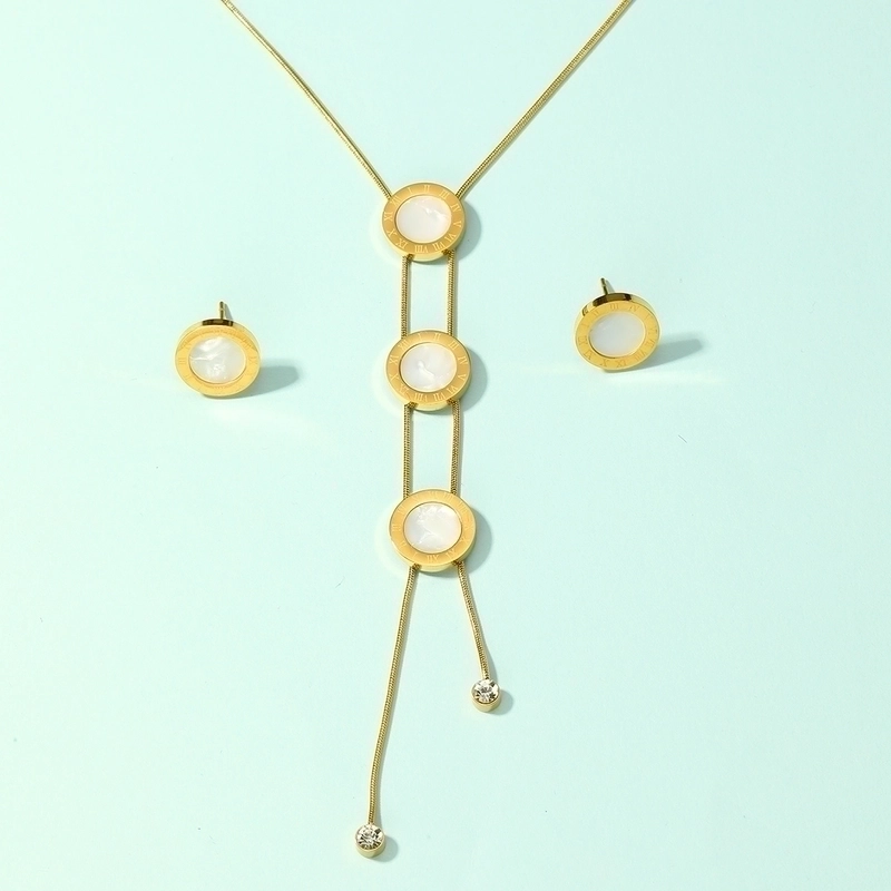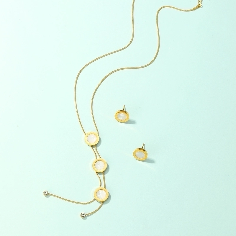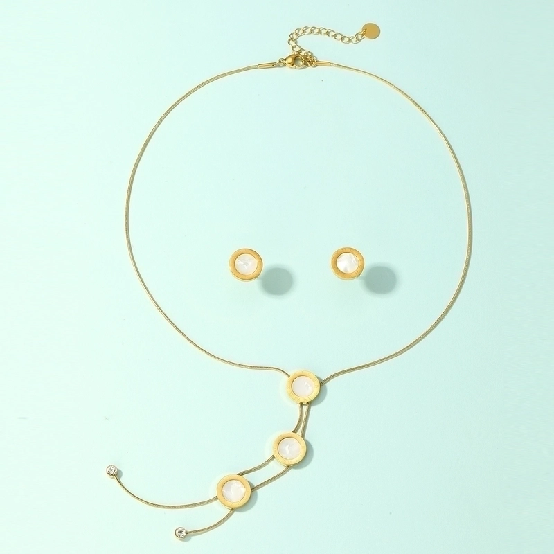 201 Stainless Steel 18K Gold Plated Basic Minimalist Plating Inlay Geometric Shell Earrings Necklace