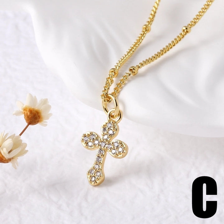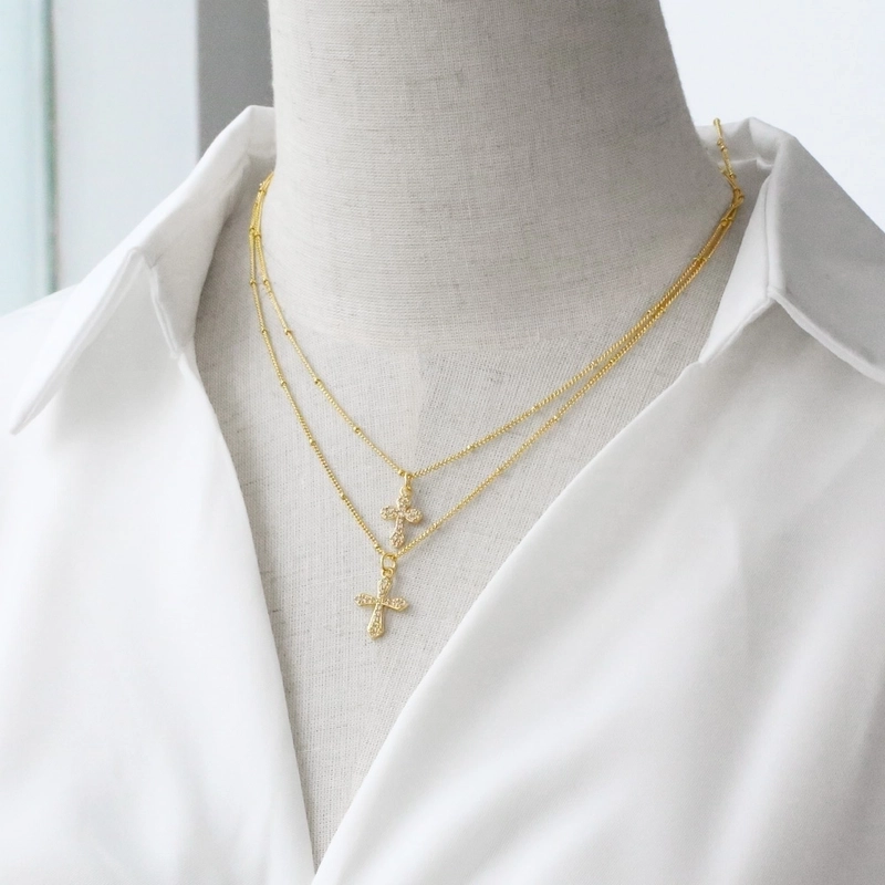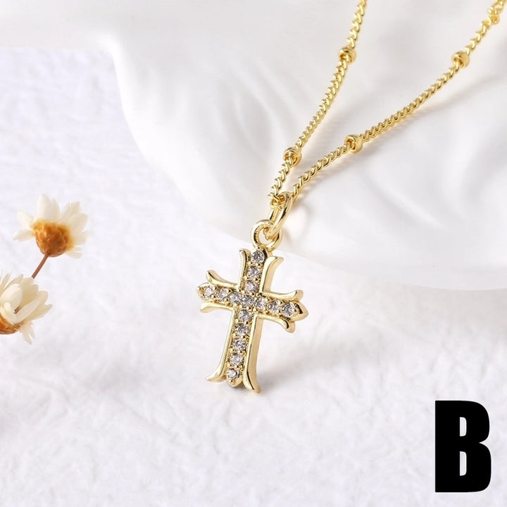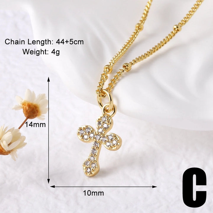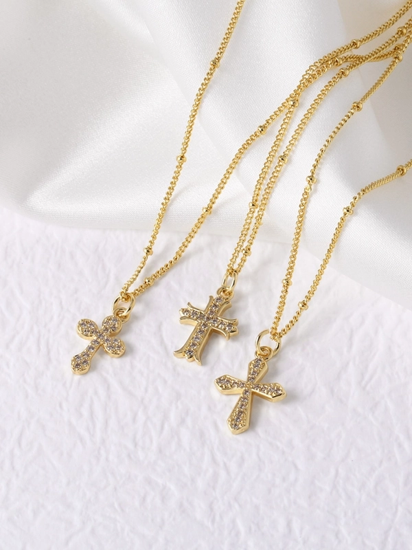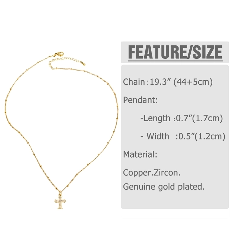201 Stainless Steel Copper Cable Chain 18K Gold Plated Plating Cross Zircon Pendant Necklace