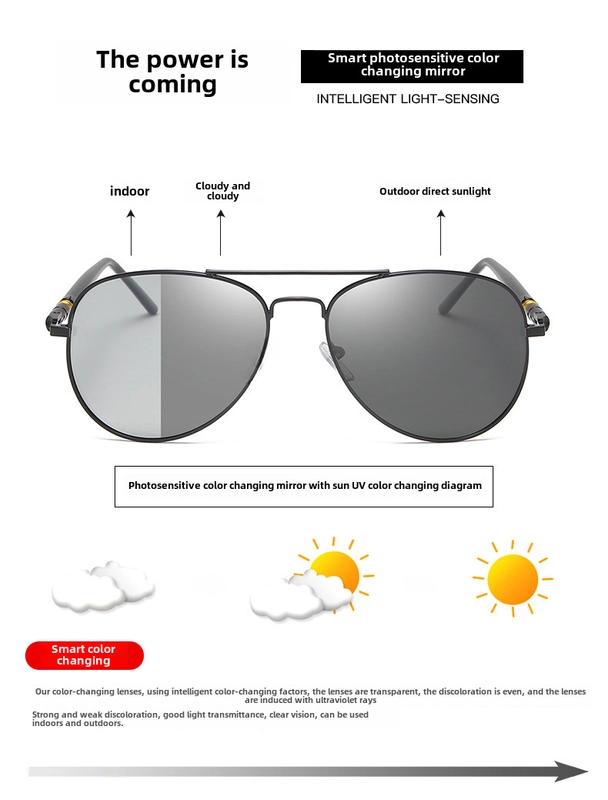 209 Photosensitive Color-Changing Glasses Metal Polarized Sunglasses Day And Night Sunglasses Men'S Goggles Driving Sunshade Glasses