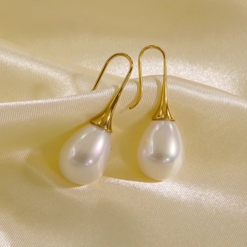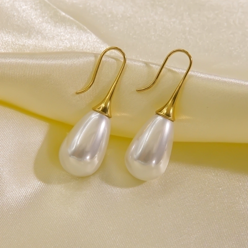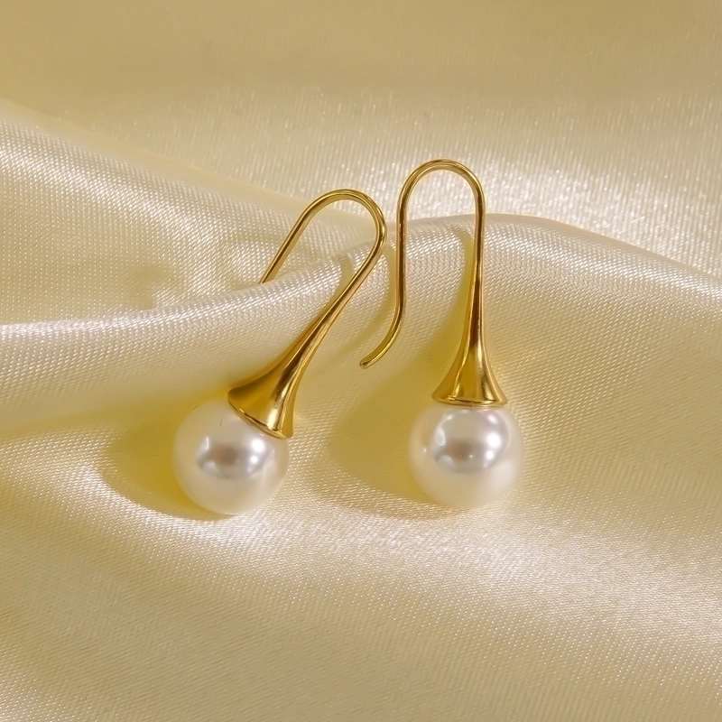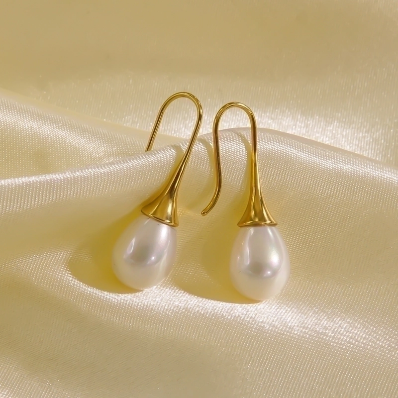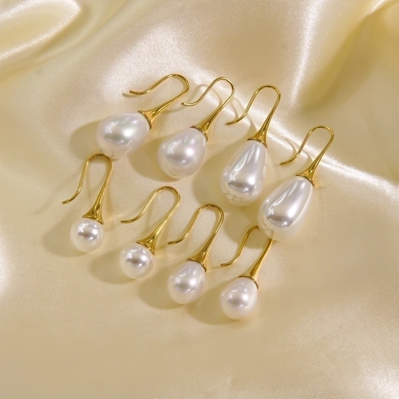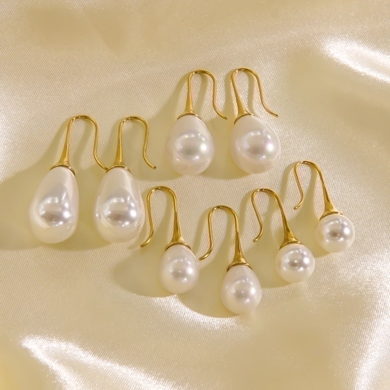 3 Pairs Elegant Minimalist Solid Color Plating Inlay 304 Stainless Steel Freshwater Pearl Pearl 14K Gold Plated Drop Earrings