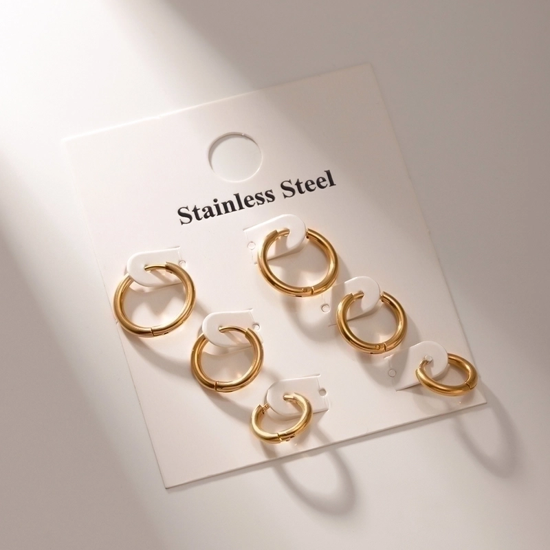 3 Pairs Ig Style Modern Style Circle 304 Stainless Steel 18K Gold Plated Stainless Steel Earrings