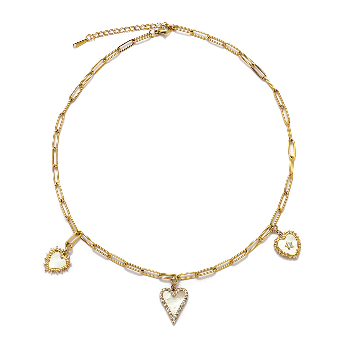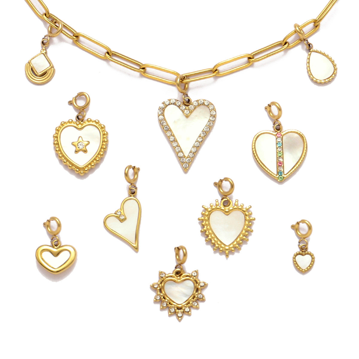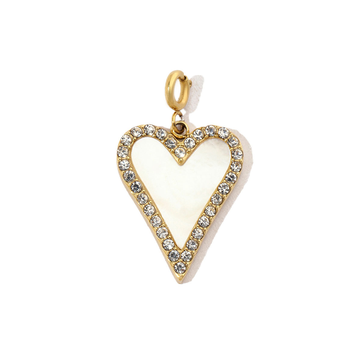 3 Pcs/Package 6*14Mm 304 Stainless Steel Shell Zircon Heart Pendant Jewelry Accessories