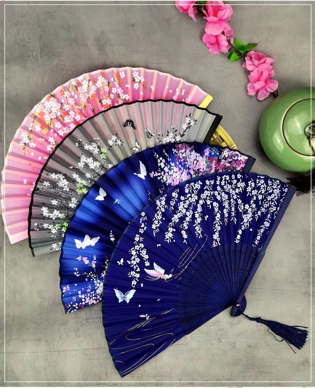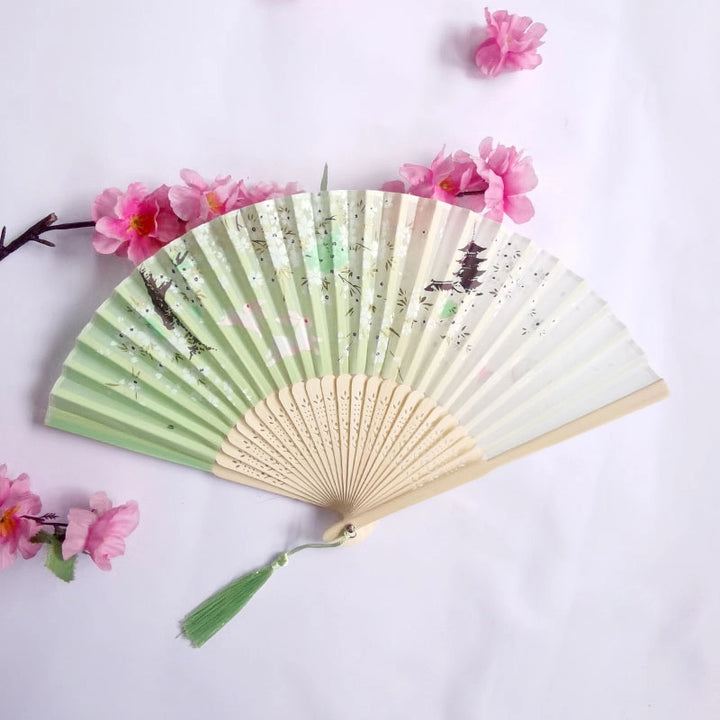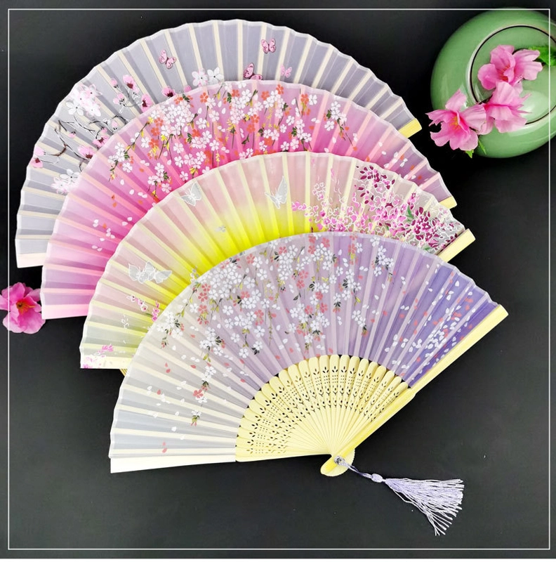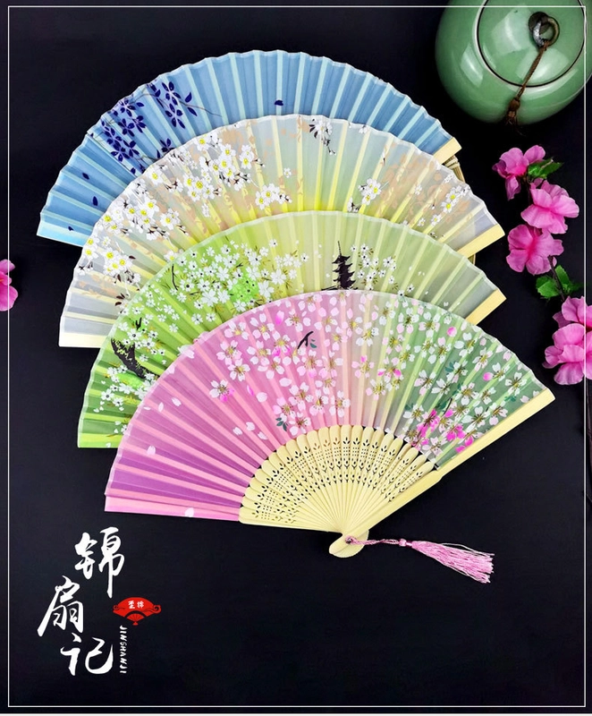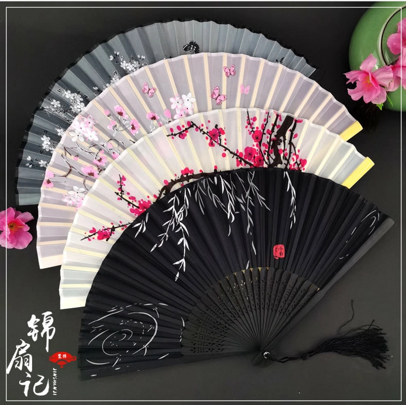 3 Pieces Ancient Style Folding Fan Female Classical Tassel Silk Fan Chinese Style Small Fan Portable Dance Craft National Fashion Fan Student Fan