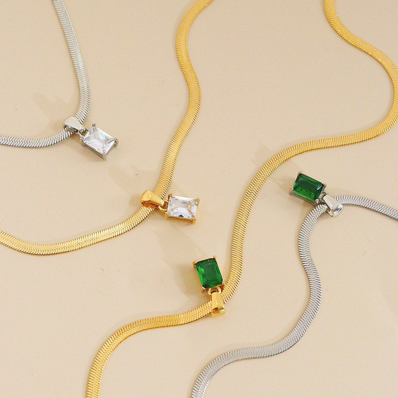 304 Stainless Steel 16K Gold Plated White Gold Plated Gold Plated Retro Plating Geometric Square Zircon Necklace
