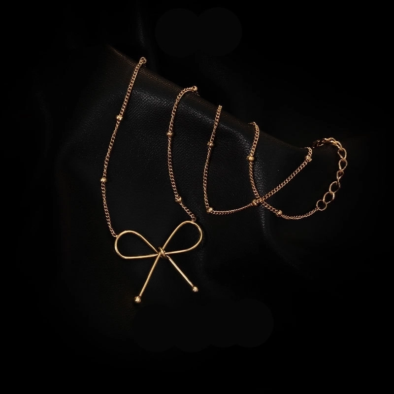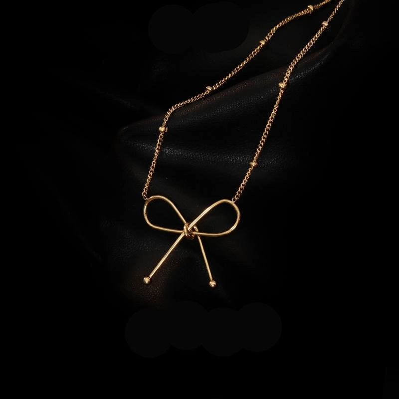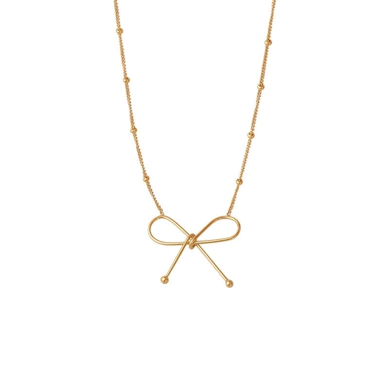 304 Stainless Steel 18K Gold Plated Minimalist Plating Bow Knot Pendant Necklace