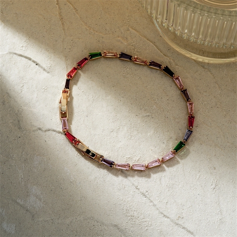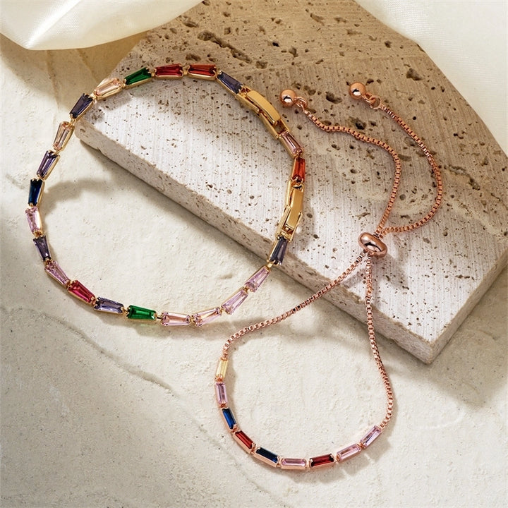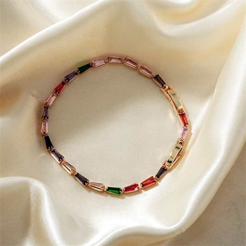 304 Stainless Steel Copper K Gold Plated Chain Inlay Geometric Trapezoid Zircon Bracelets