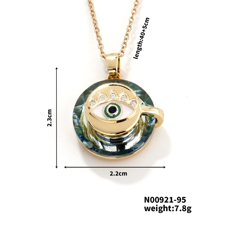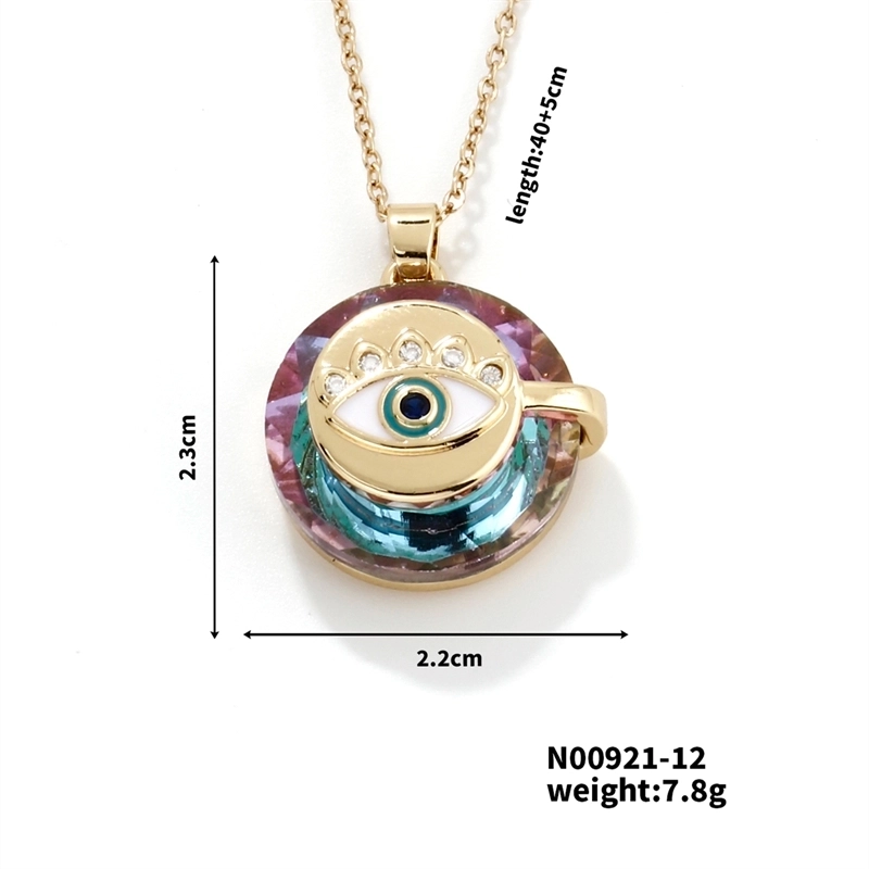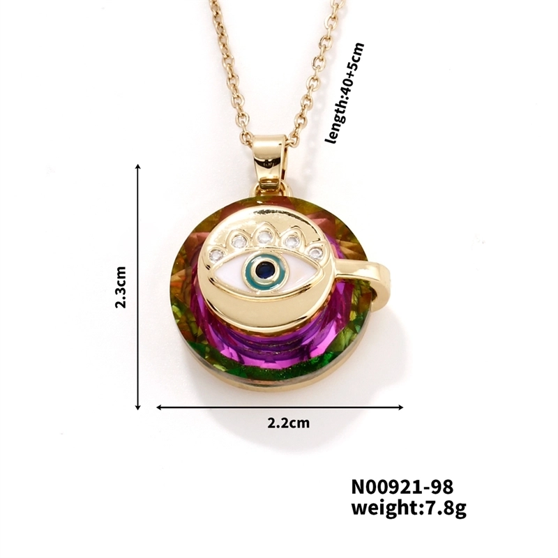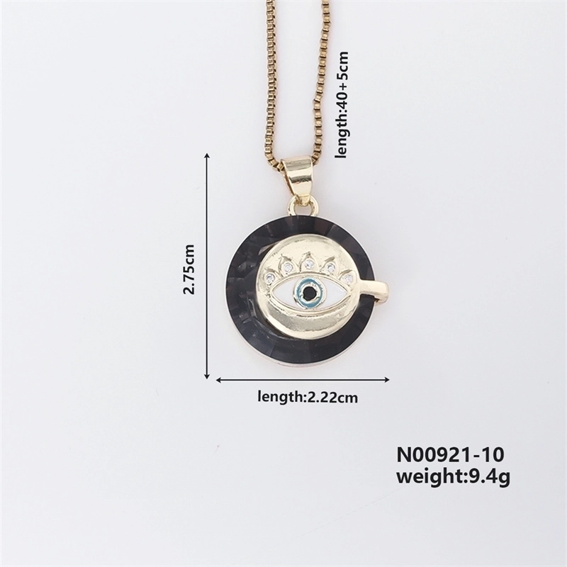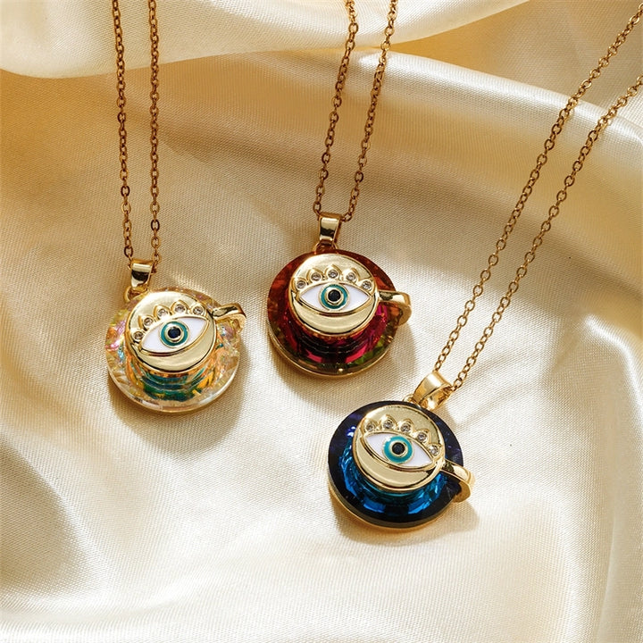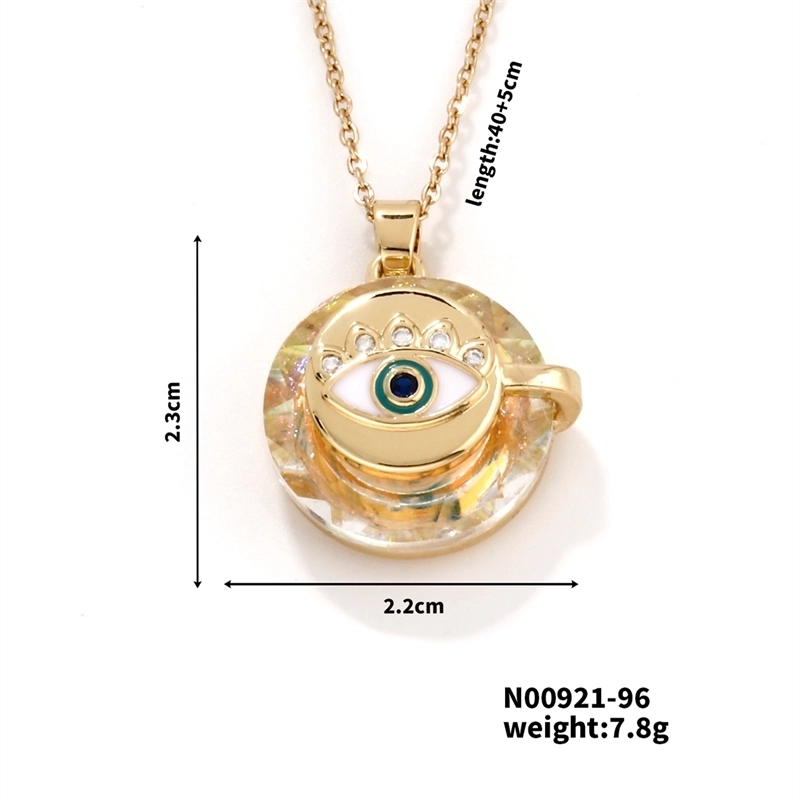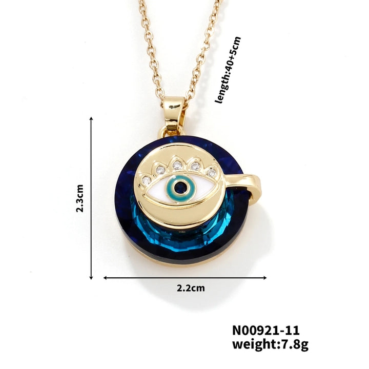 304 Stainless Steel Copper K Gold Plated Inlay Devil'S Eye Crystal Pendant Necklace