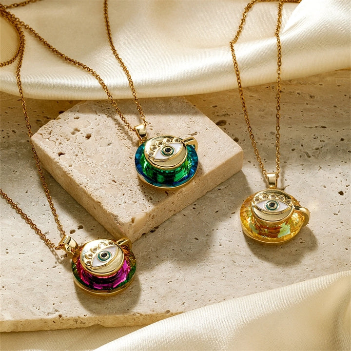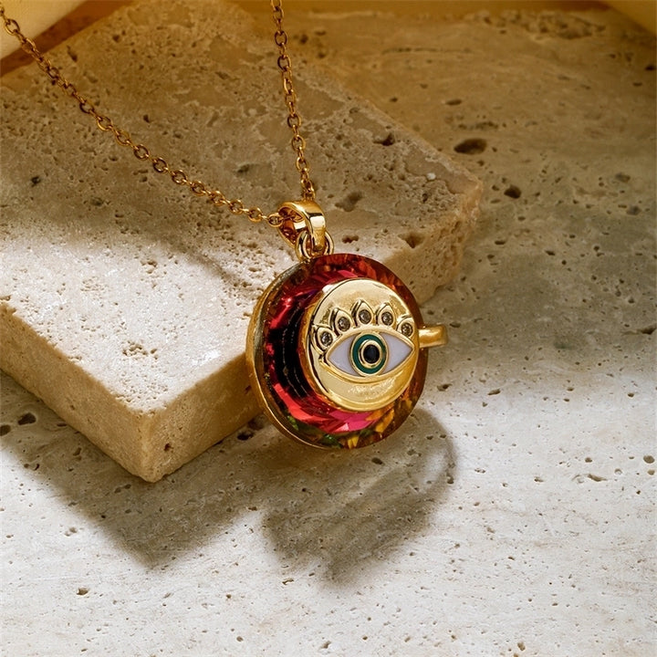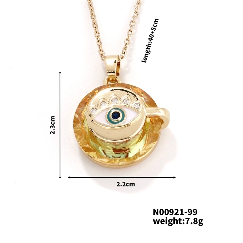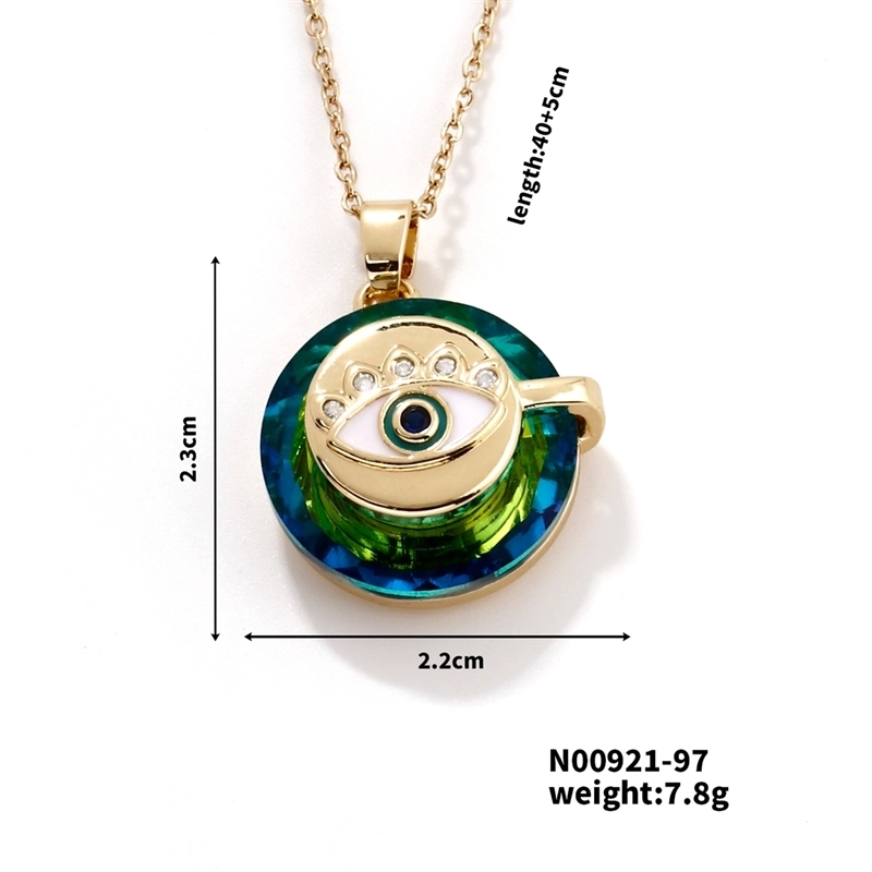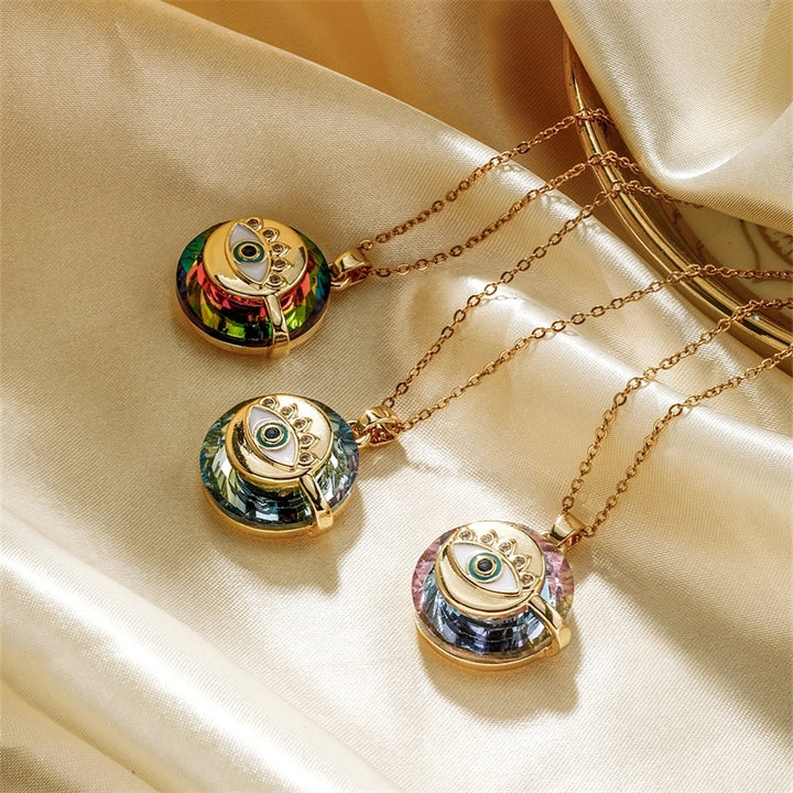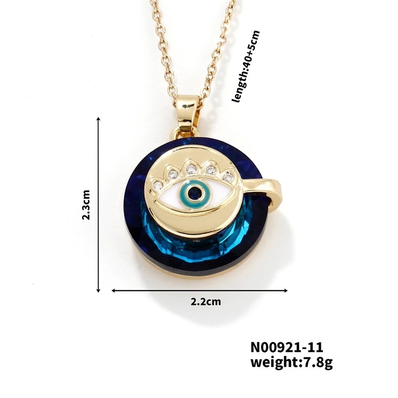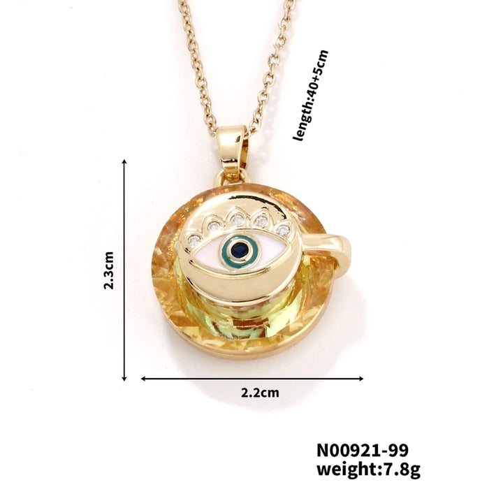 304 Stainless Steel Copper K Gold Plated Inlay Devil'S Eye Crystal Pendant Necklace