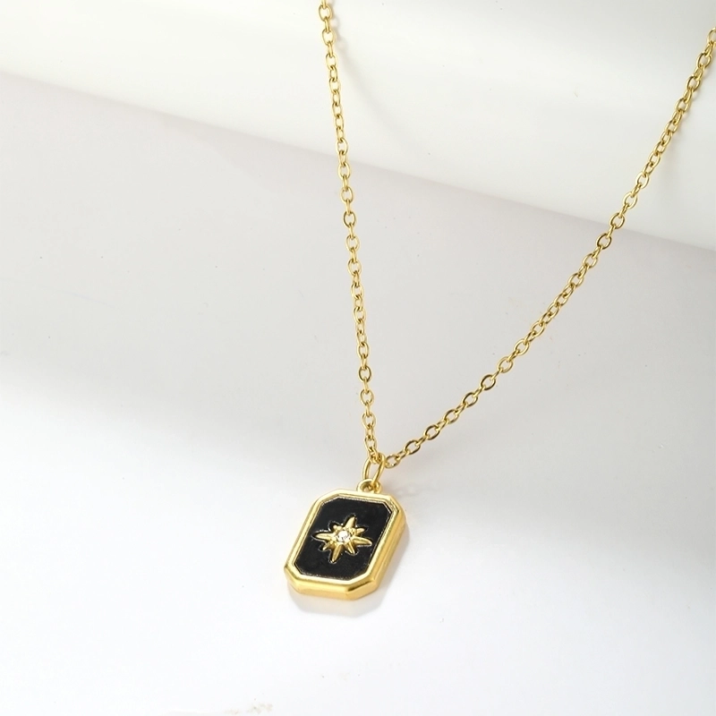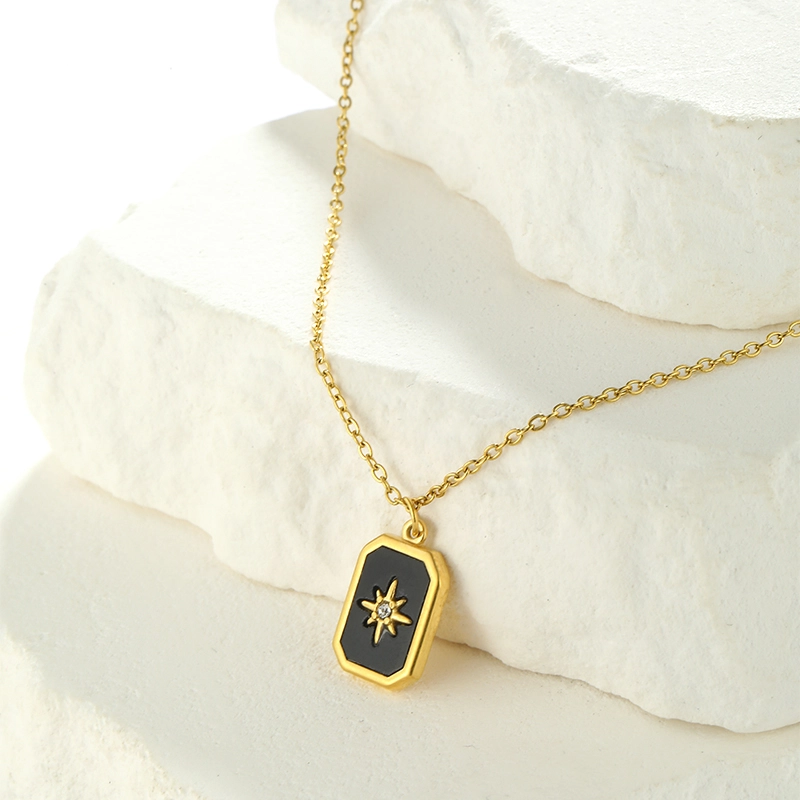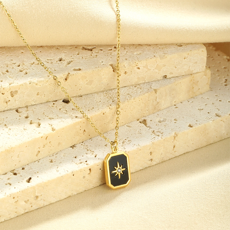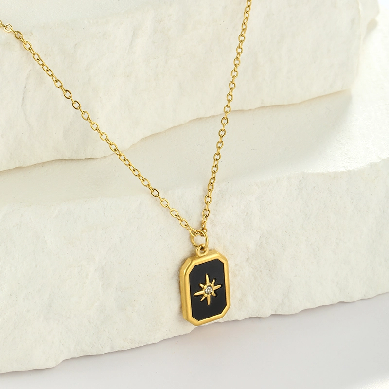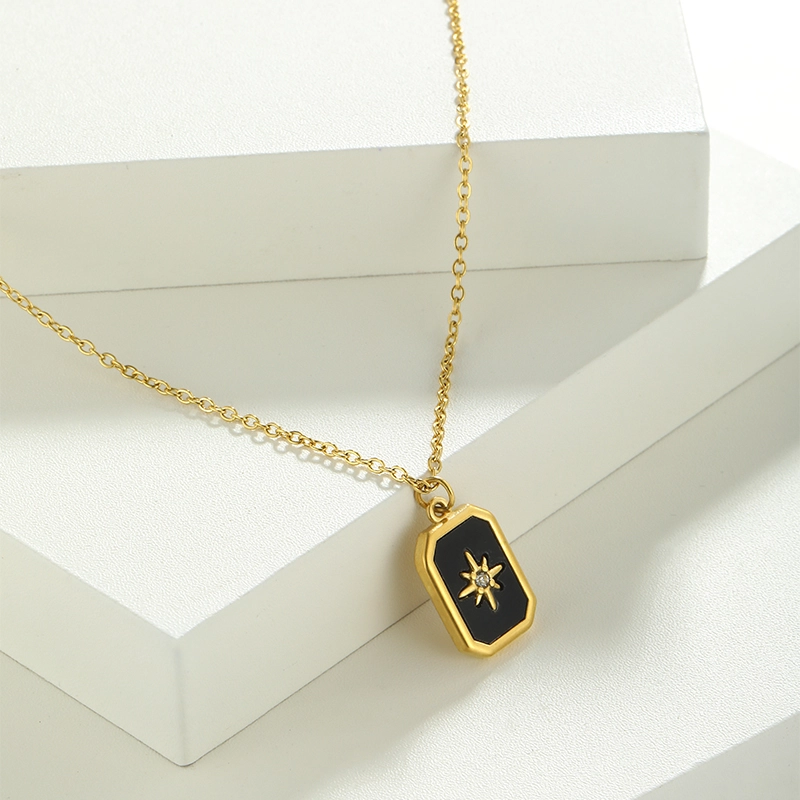 304 Stainless Steel Minimalist Shiny Plating Inlay Sun Zircon Pendant Necklace