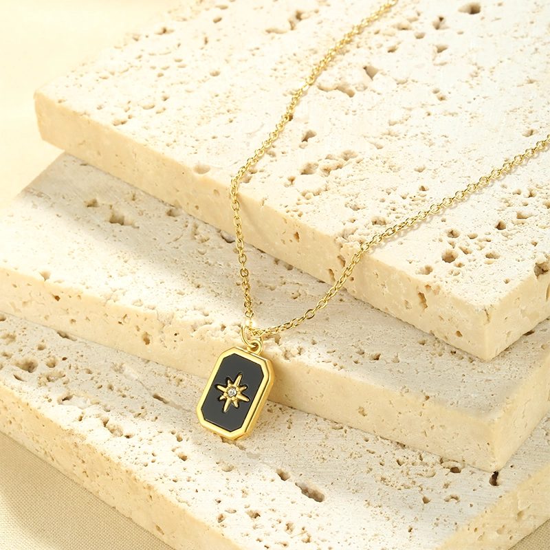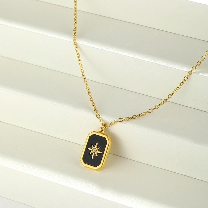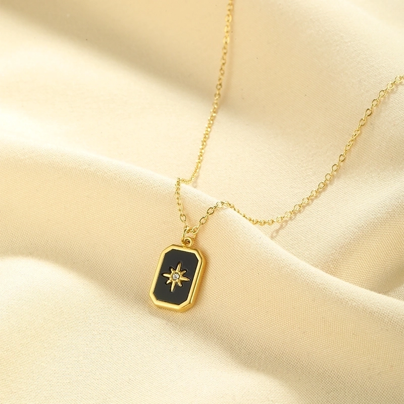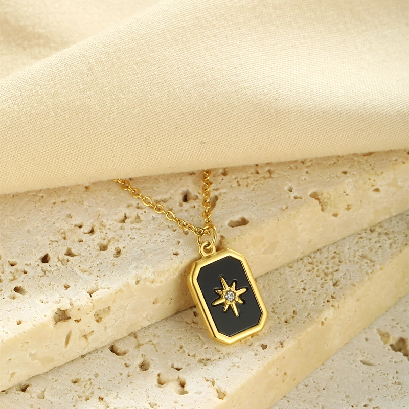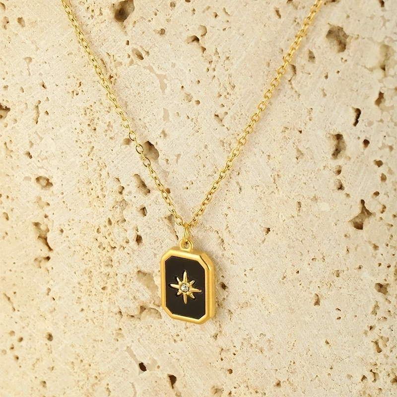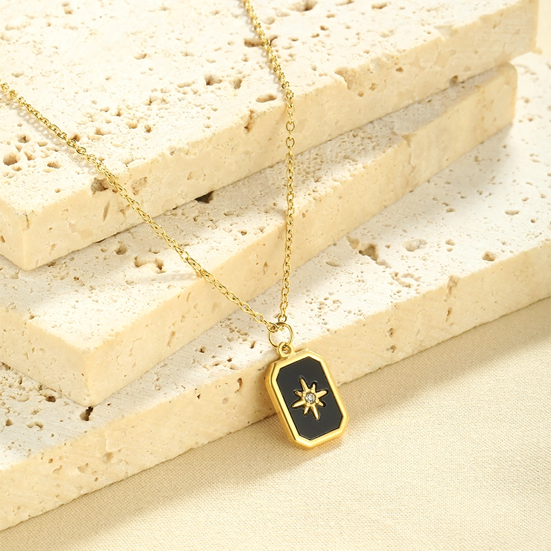304 Stainless Steel Minimalist Shiny Plating Inlay Sun Zircon Pendant Necklace