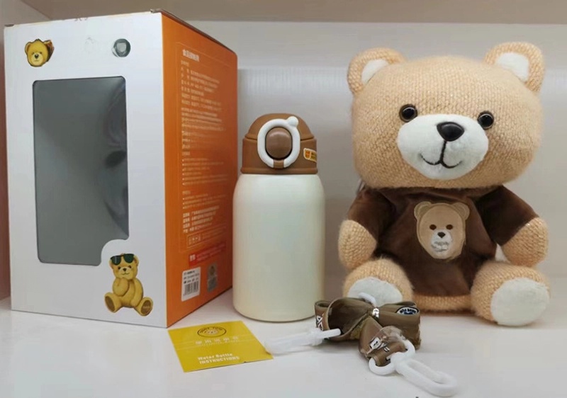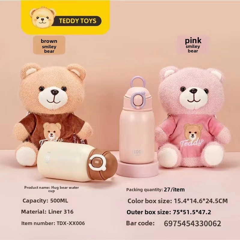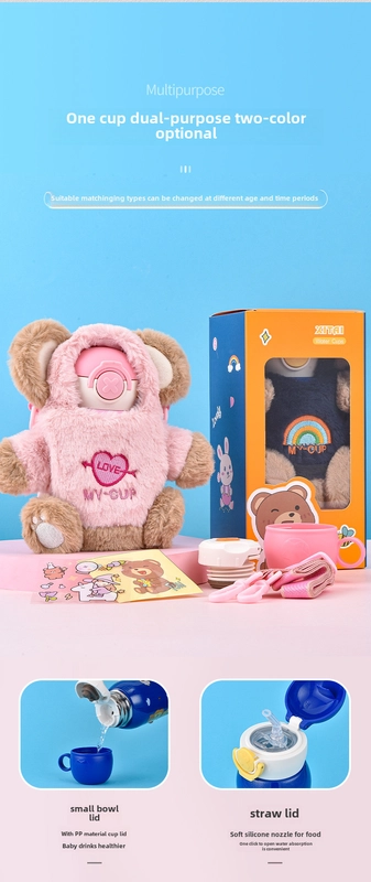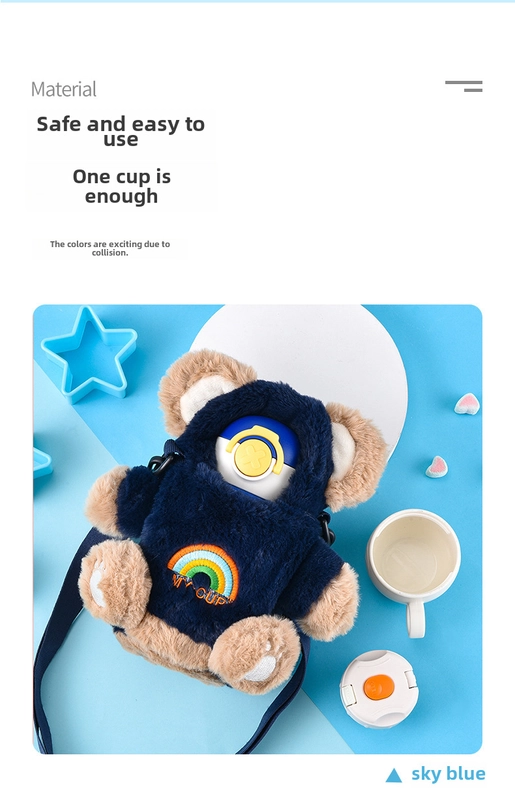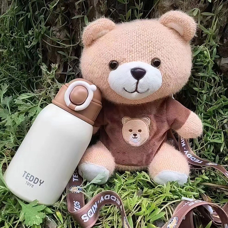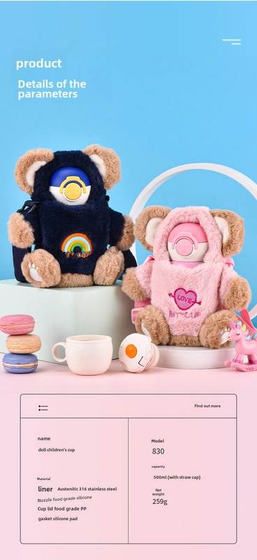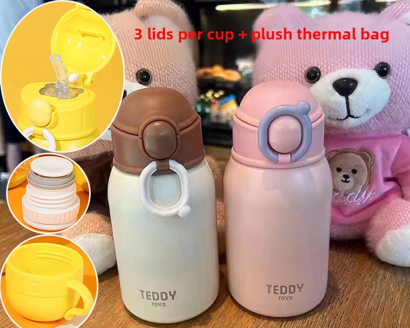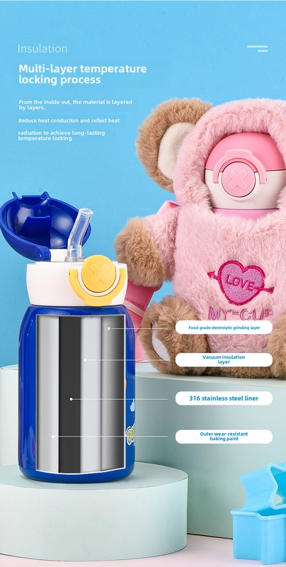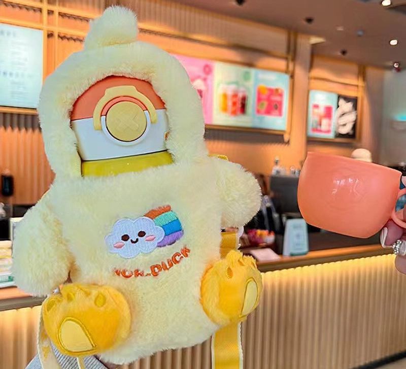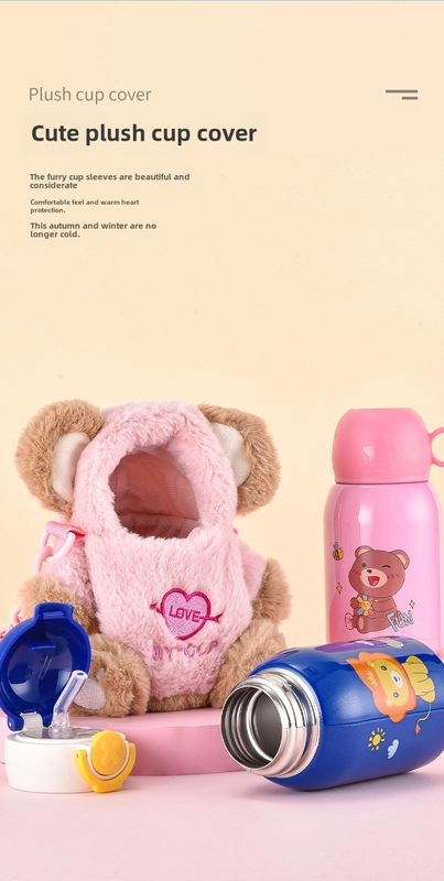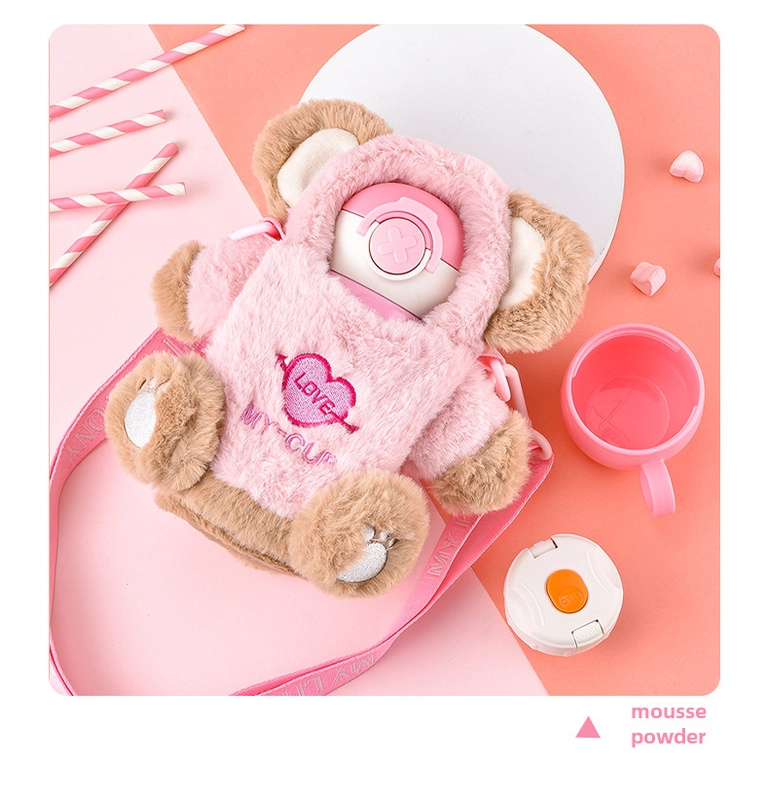 316 Vacuum Cup For Girls With Plush Cup Cover Kettle Crossbody Portable Cute Student Quilt Children Straw Water Cup