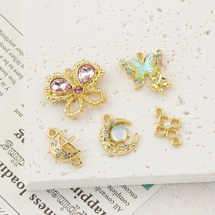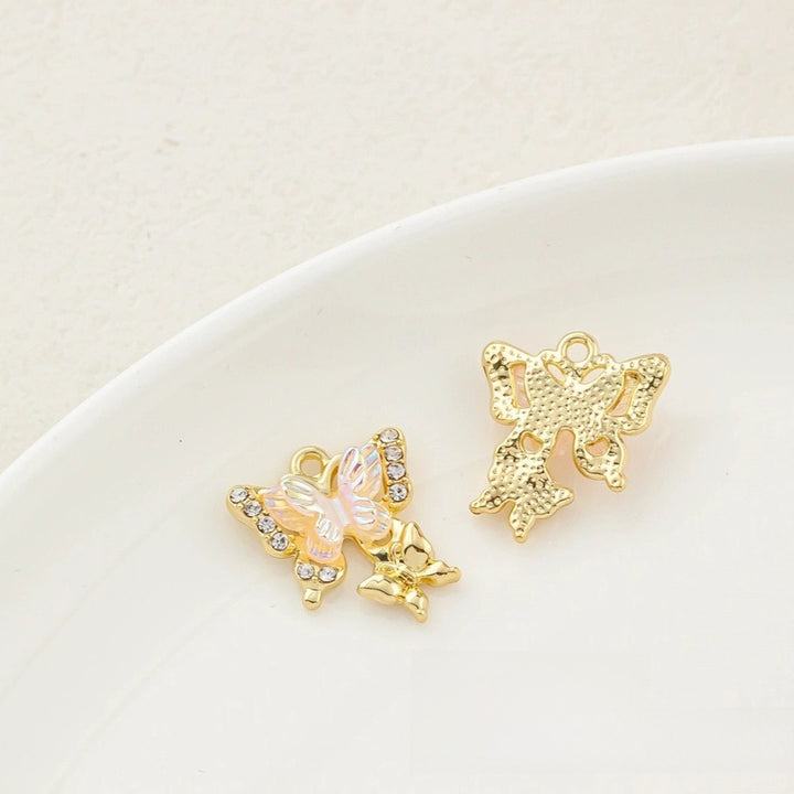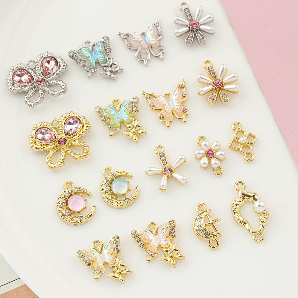 5 Pcs/Package 20 * 23Mm Alloy Artificial Pearls Rhinestones Flower Butterfly Pendant Jewelry Accessories