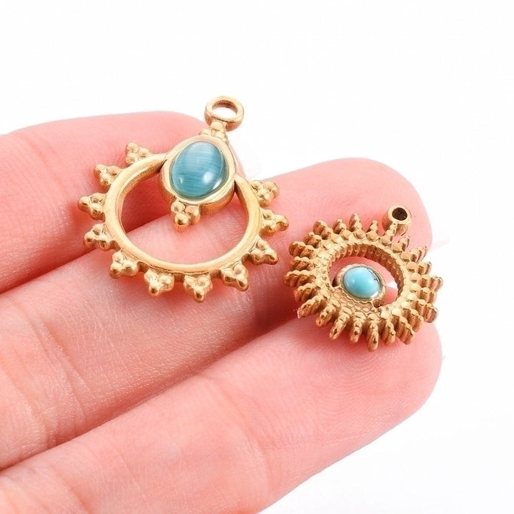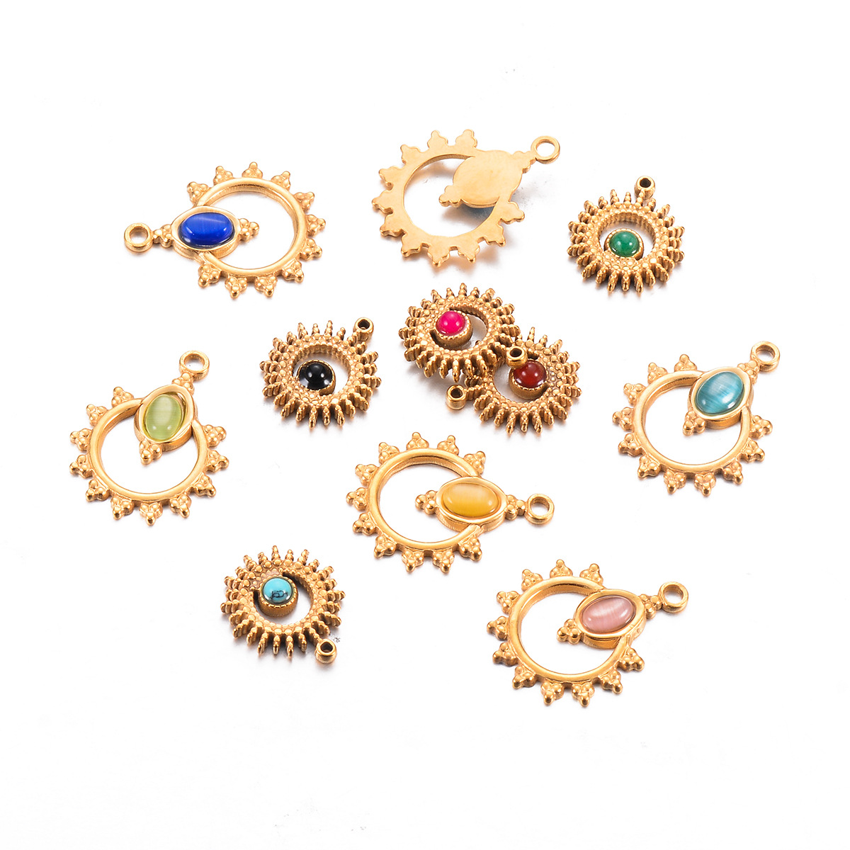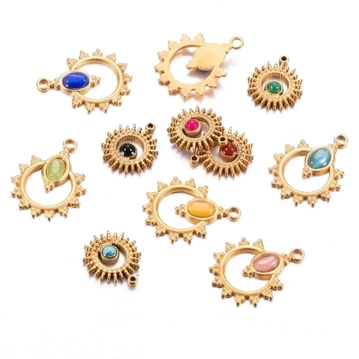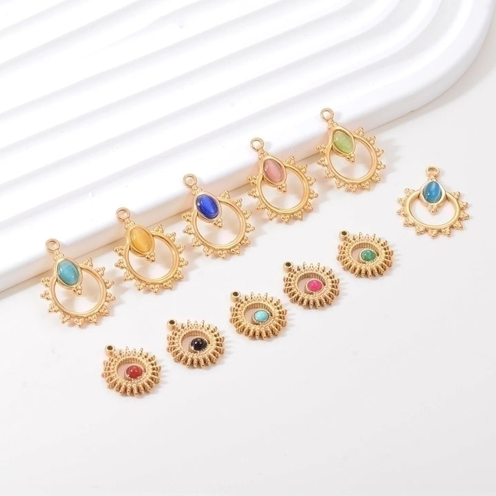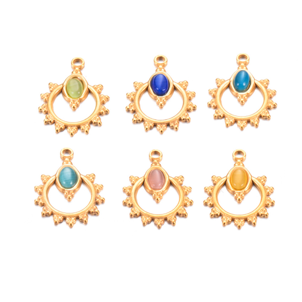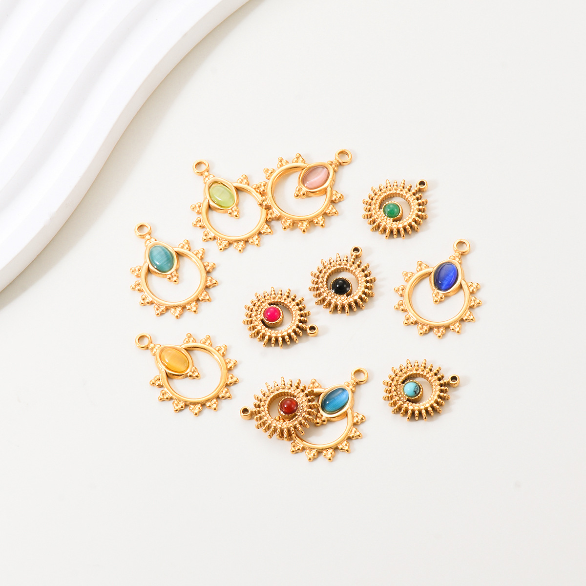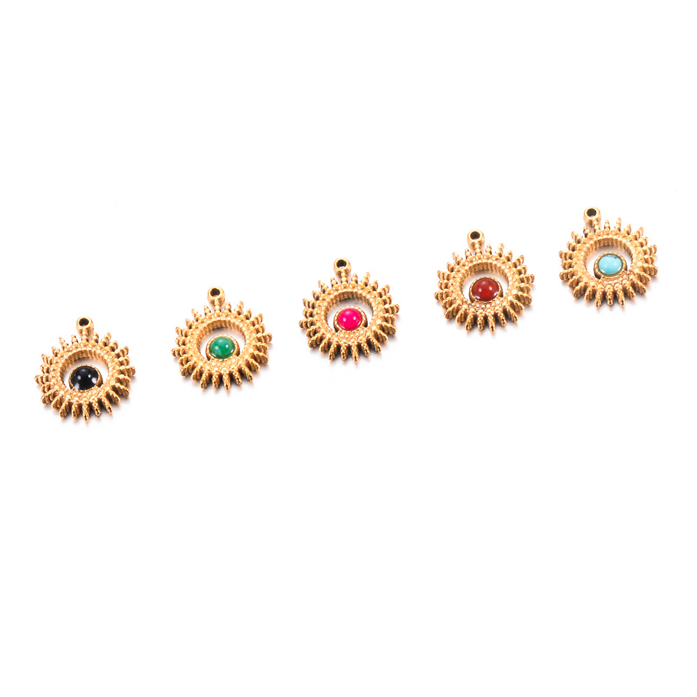 5 Pcs/Package Minimalist Round Stainless Steel Plating Inlay Pendant Jewelry Accessories